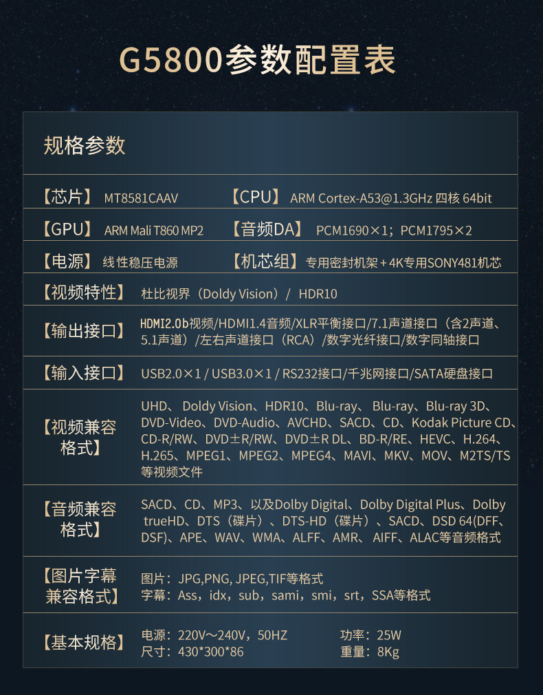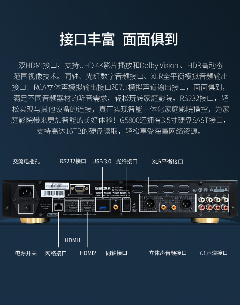 Giec Jieke BDP-G5800 True 4k UHD синий Light Player HiFi Hard Disk Player Dolby