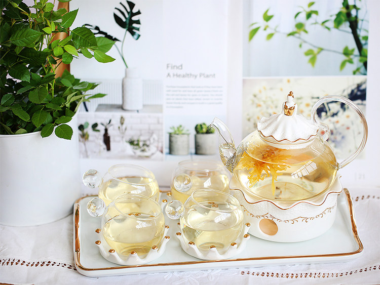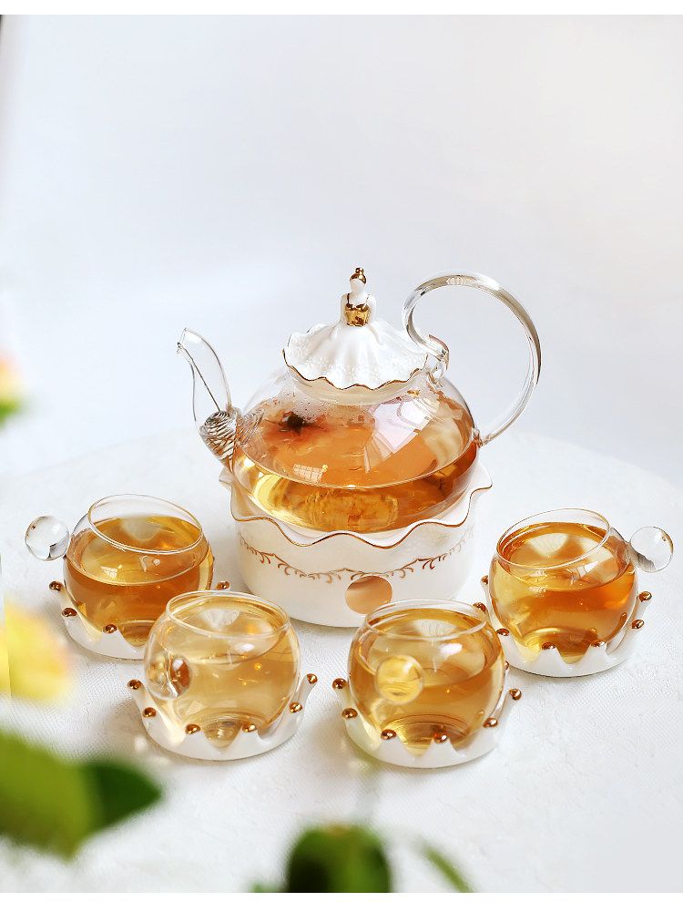 Те чай чая чая чая чая комплект Изысканный английский низ Траурный чай устойчив высокая Температурный стеклянный чайник