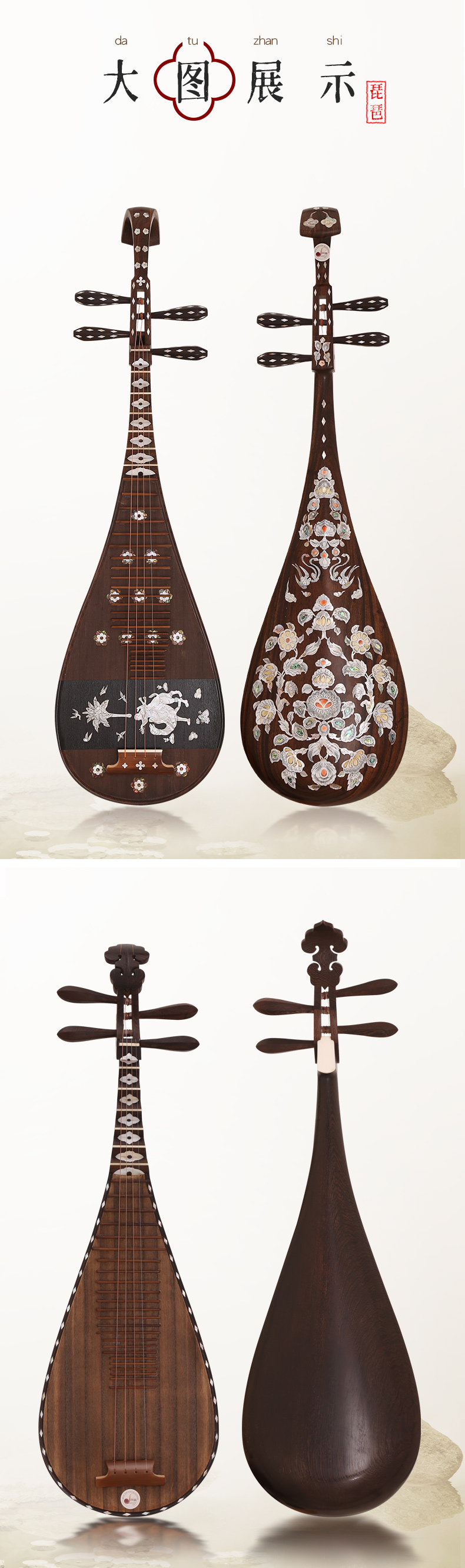 Монкий музыкальный инструмент красный Дерево черный Кислые зерновые куриные крылышки копия династия Тан дверь Производительность экзамена 琵 музыкальный инструмент