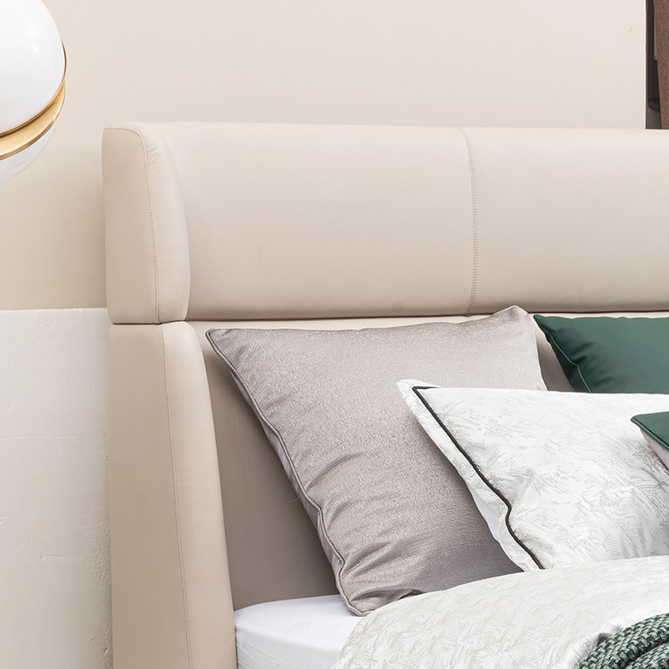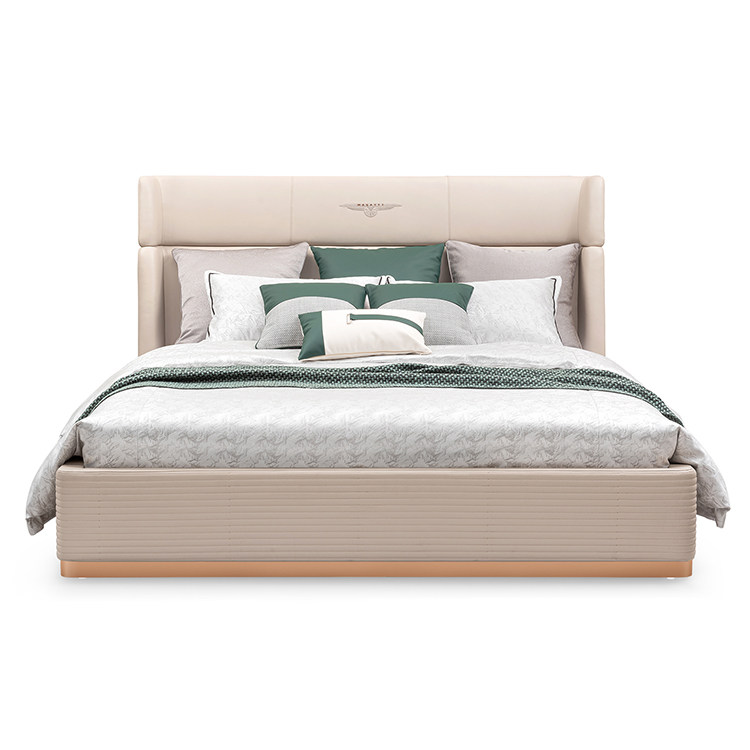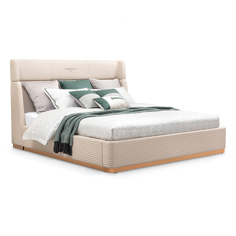 Youfan Art Maryland Light Luxury Простой из натуральной кожи Кровать главная спальня из массива дерева двуспальная кровать из нержавеющей стали слой головы кожаный 392G