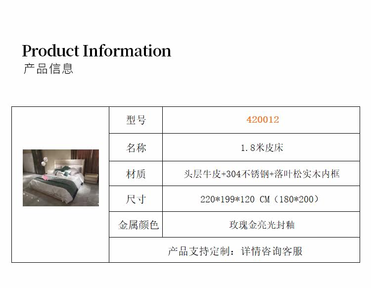 Размер: 1800mm*2000mmЦвет: Кожаная кроватьКонструкция мебели: Фреймворк