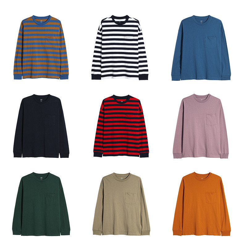 【Тяжелое плотное плетение】Зазор мужские и женские Наряд чистый хлопок длинный рукав Футболка весна-лето новая коллекция популярный для влюбленной пары для отдыха верх одежда
