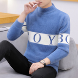 Осень-зима Четверть половины высокая Свитер из норки с воротником из флиса мужской Свободный трикотажный Рубашка модные замшевый утепленный Осенняя одежда верх Одежда
