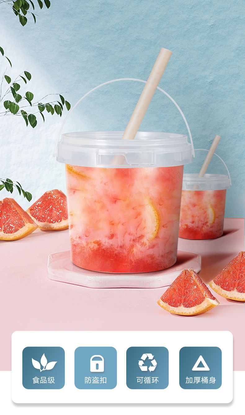 Курс еды Ведро фруктовой чайной ручной сети красный Молоко чайное ведро ледяное порошок ведро прозрачное ведро корпус бить пакет Уплотнительная ствол 5л литр