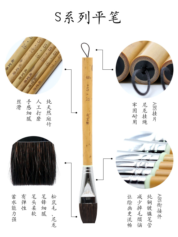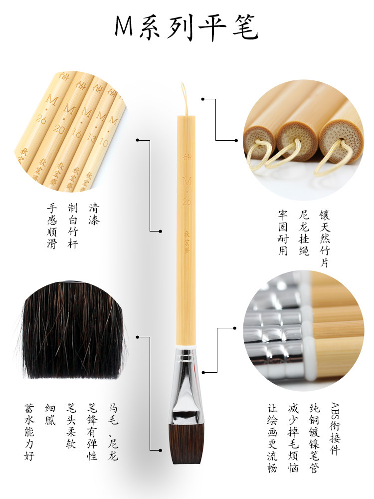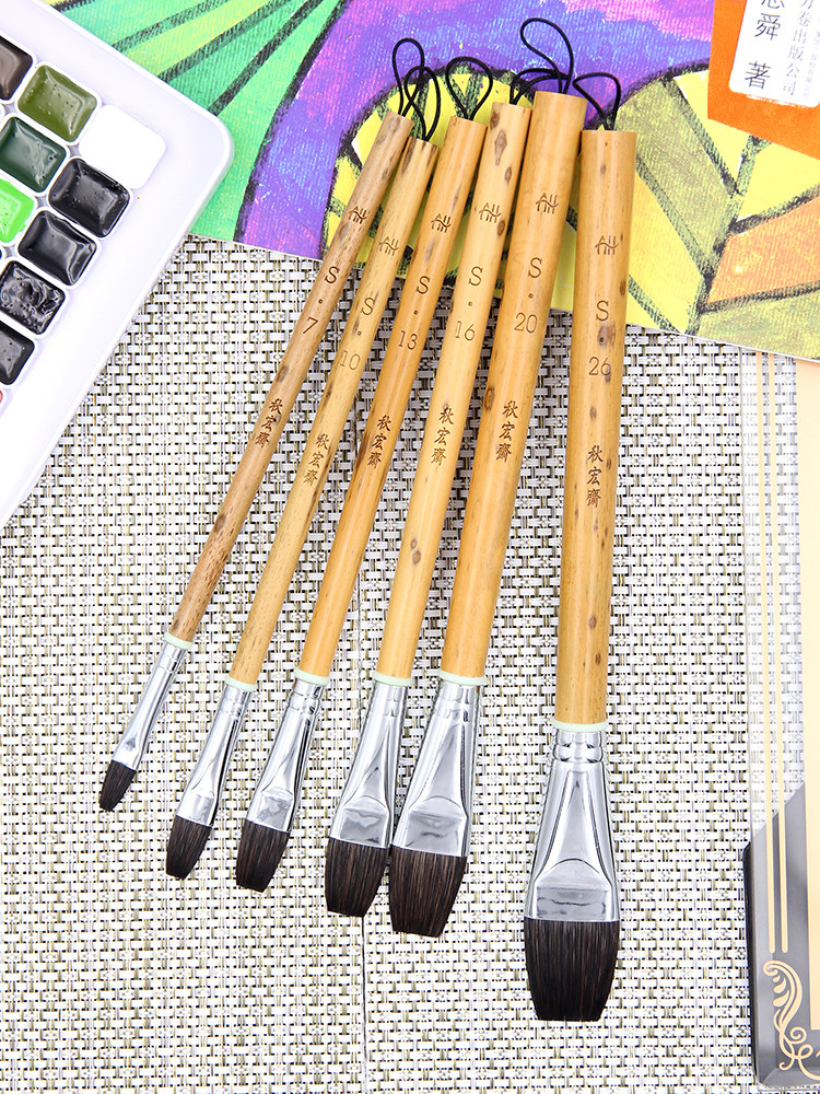 Qiuhongzhai Matson Mao Series Water цвет Плоская кисть верх Цвет покрытия цветом чистки вода покраска ландшафтная иллюстрация комплект Плоский