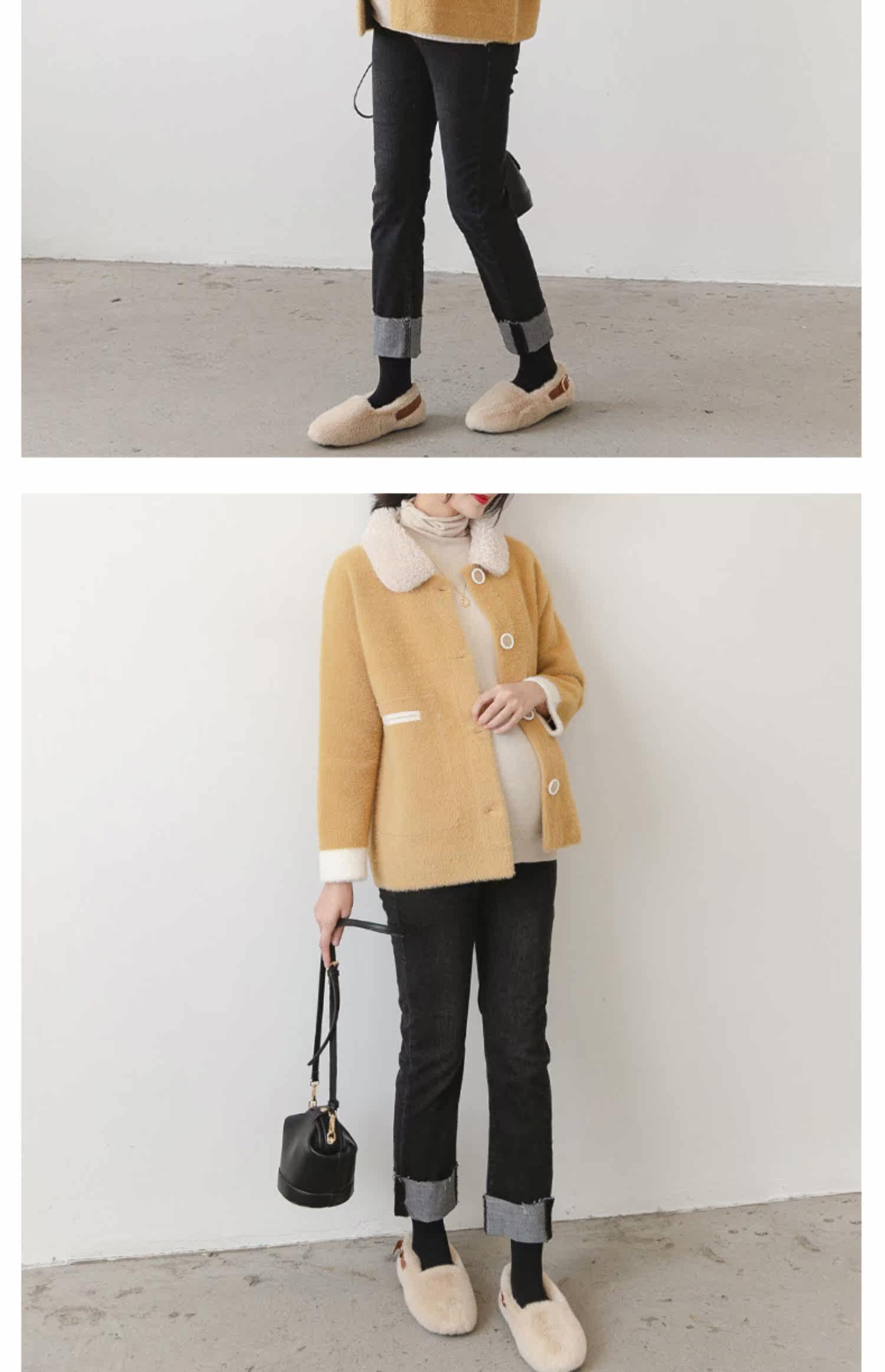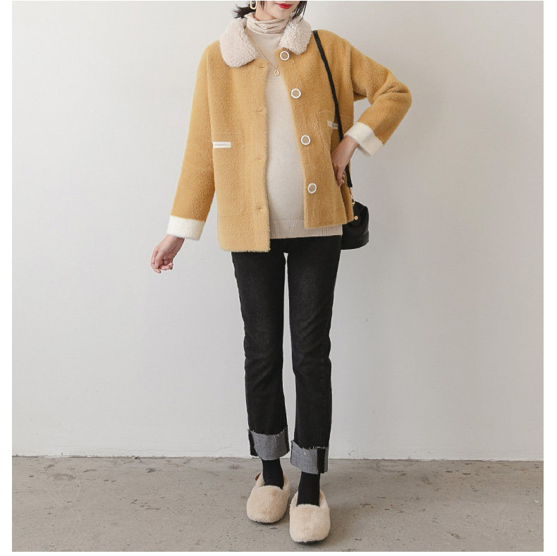 Беременная женщина куртка осень-зима популярный стиль западный стиль копия Бархат верх Куртки короткий кардиган Фу Мах