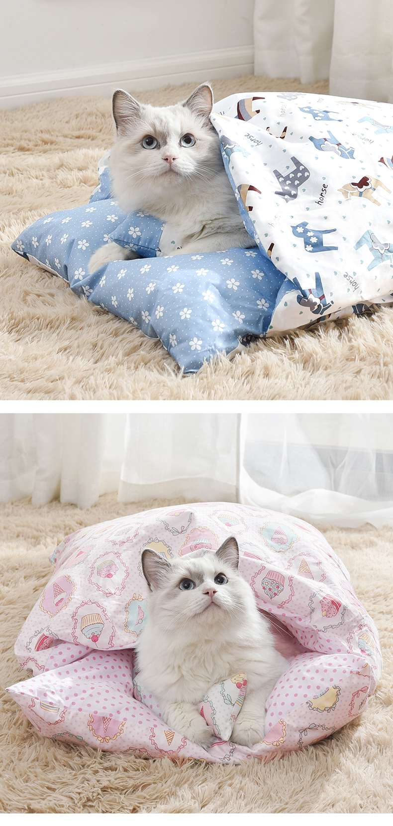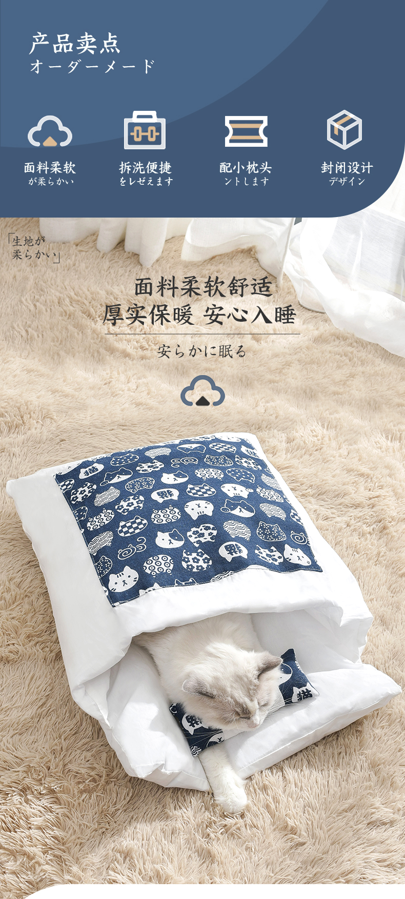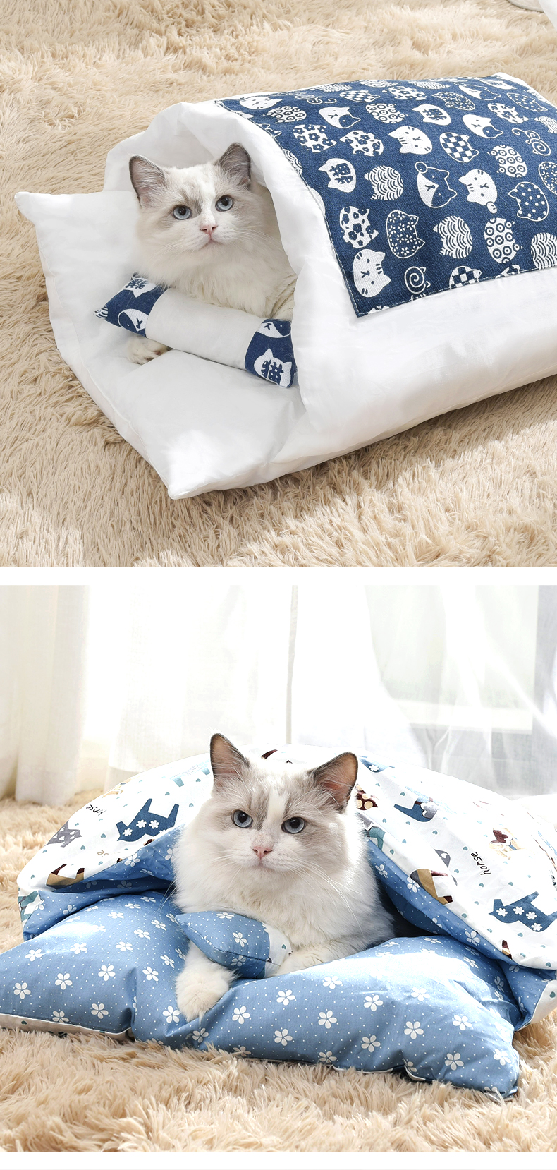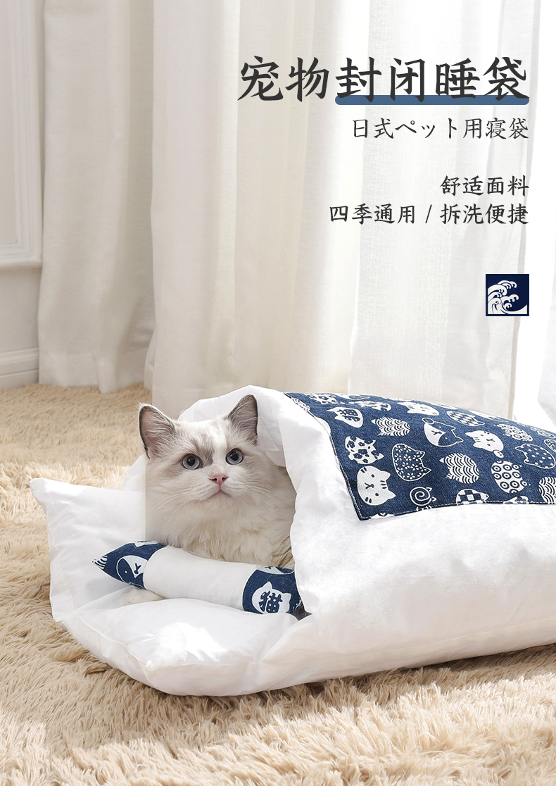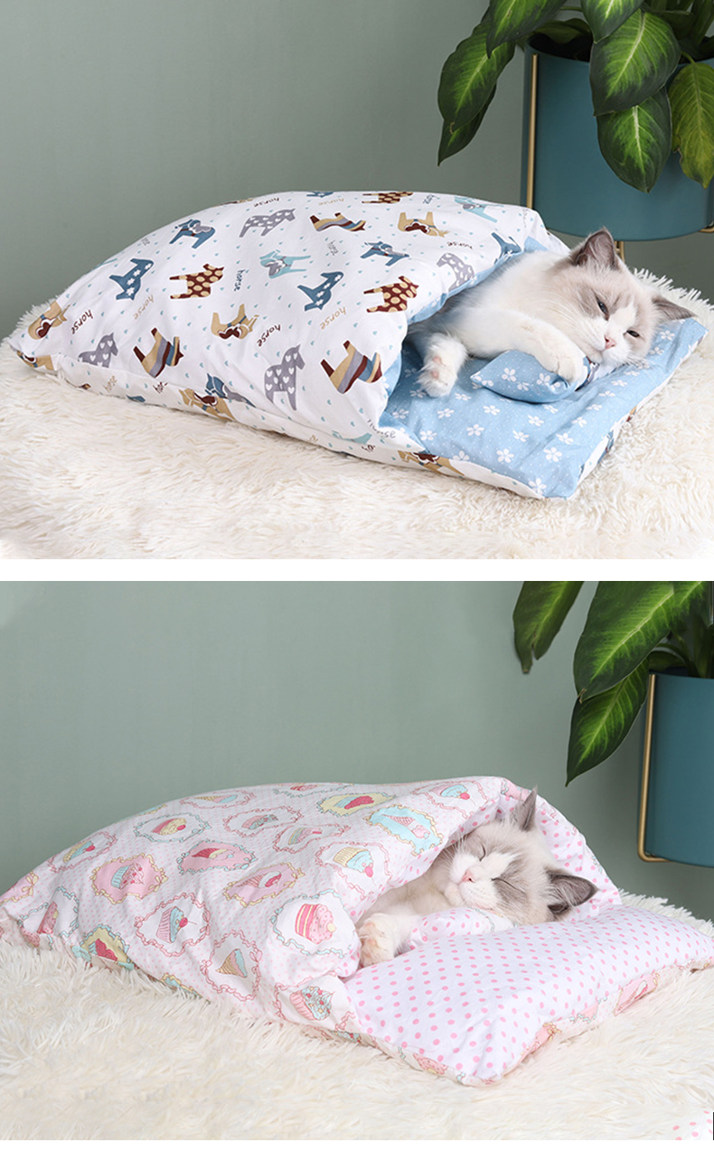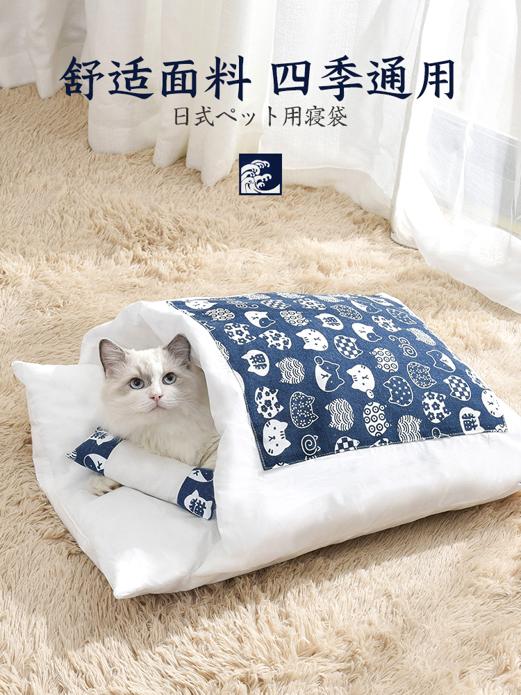 Кошачье гнездо зимний удерживающий тепло Спальный мешок для кошек полностью Закрытый, съемный и моющийся темно Одеяло для спящего кота, Японское одеяло, питомник