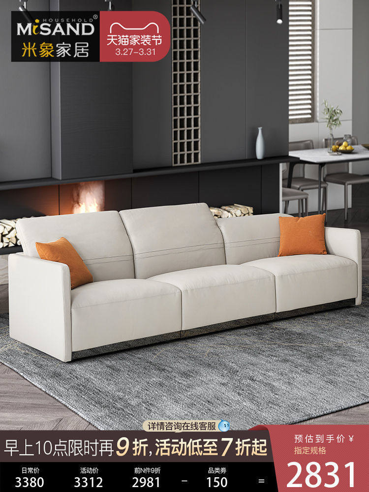 Итальянский минимализм из натуральной кожи Диван первый этаж кожаный Большая и маленькая квартира трехместный кожаный диван гостиная сейчас поколение Легкий роскошный пух