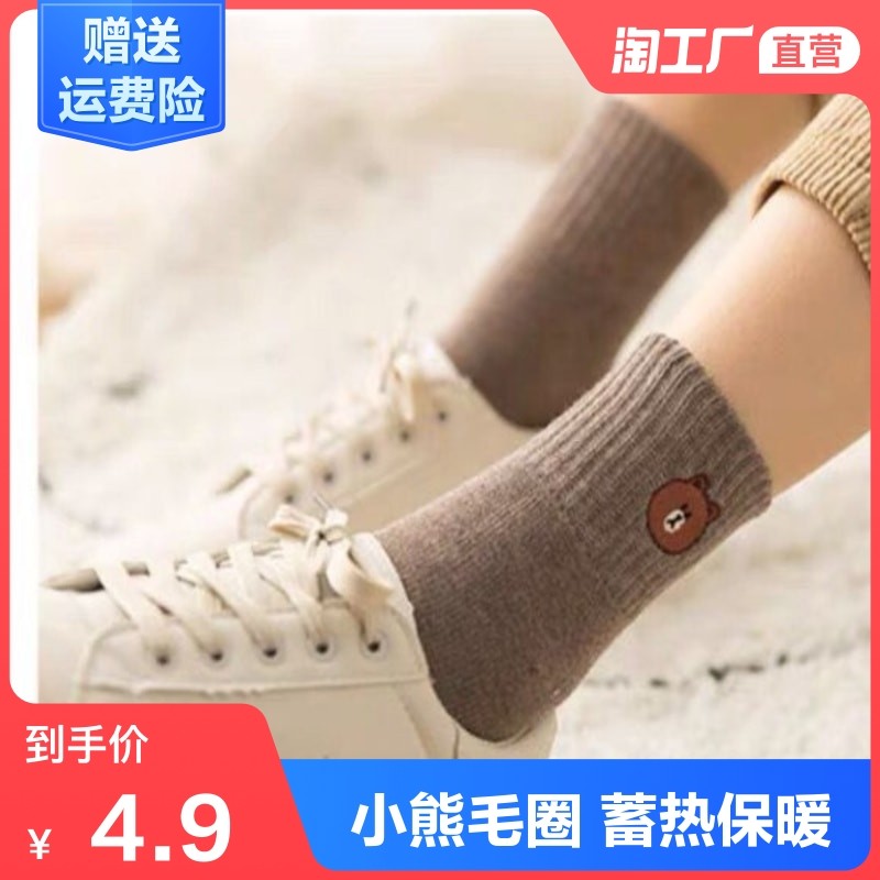 Контур аккумулирования тепла утепленный Носки женские осень-зима ins tide личность мультфильм медведь милый японский стиль колледжа средние Носки