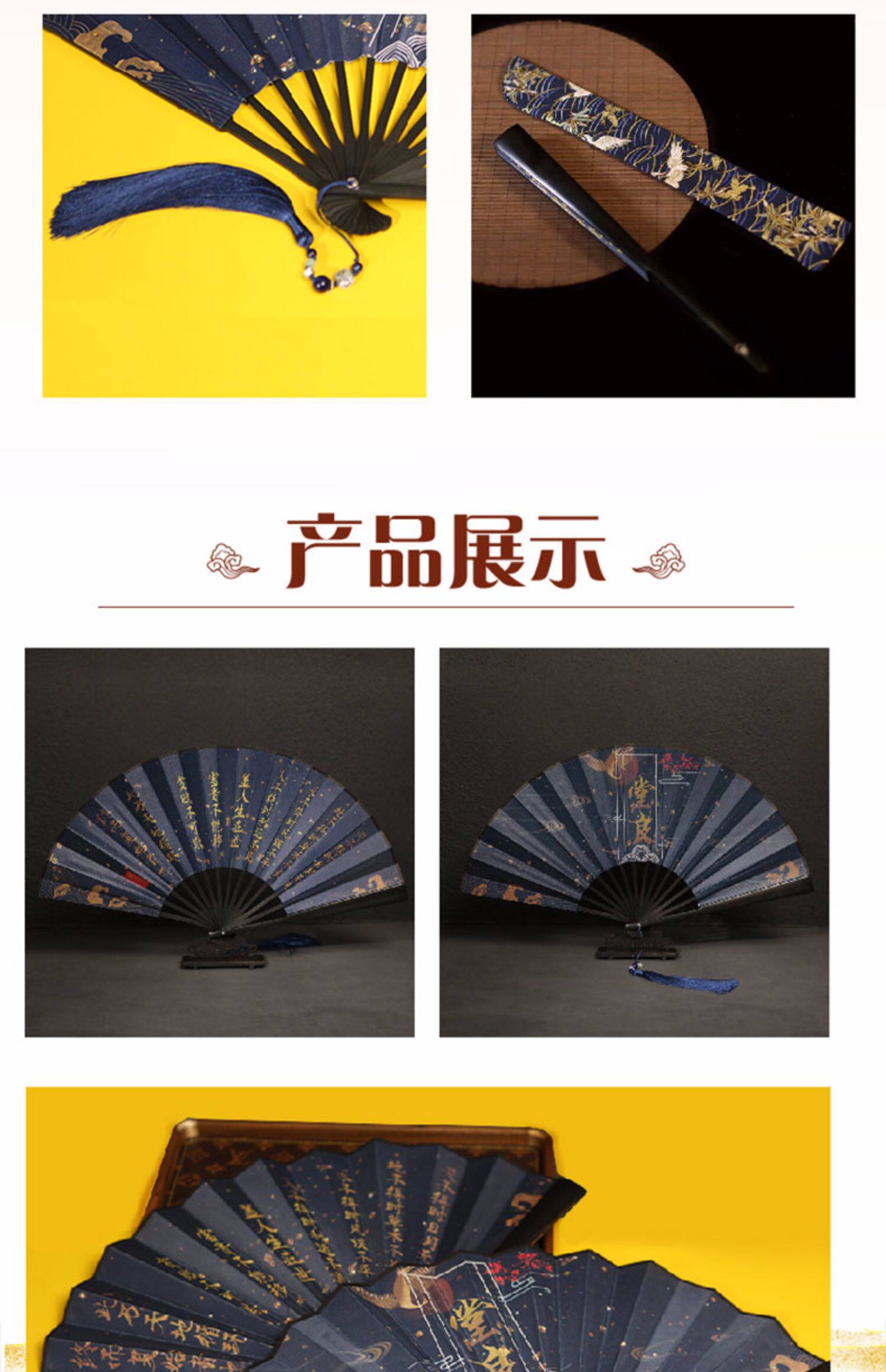 Цвет: 9-дюймовый фанат-Танглиан, Темно синий S Xiangcheng горячий штампованный вентилятор( без поклонник), Ручная работа Ледяной шелк с бахромой -IN Железный плохой цвет, Темно синий поклонник с застежкой