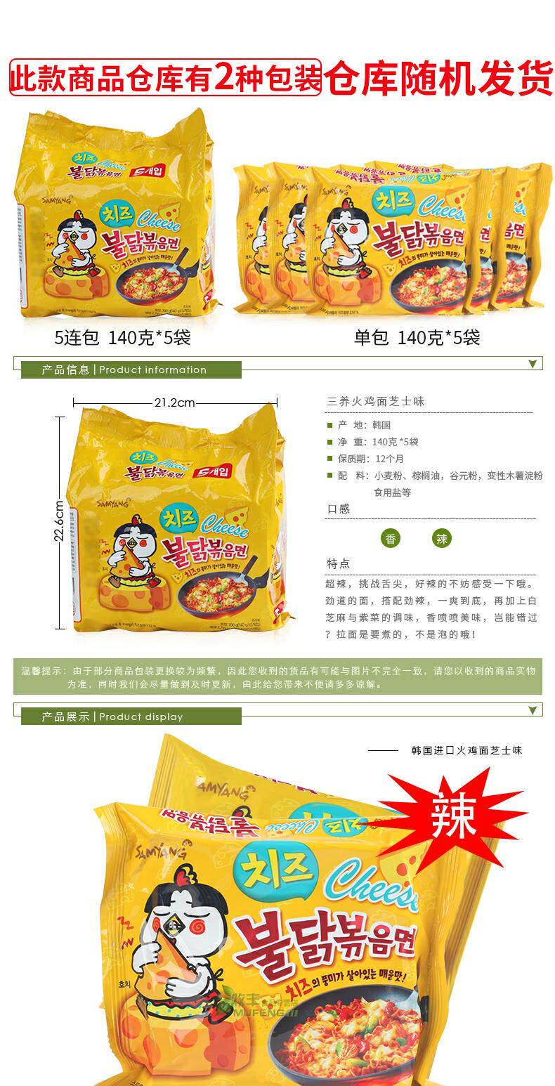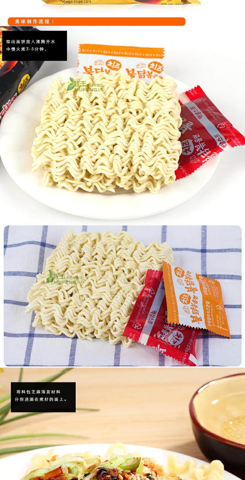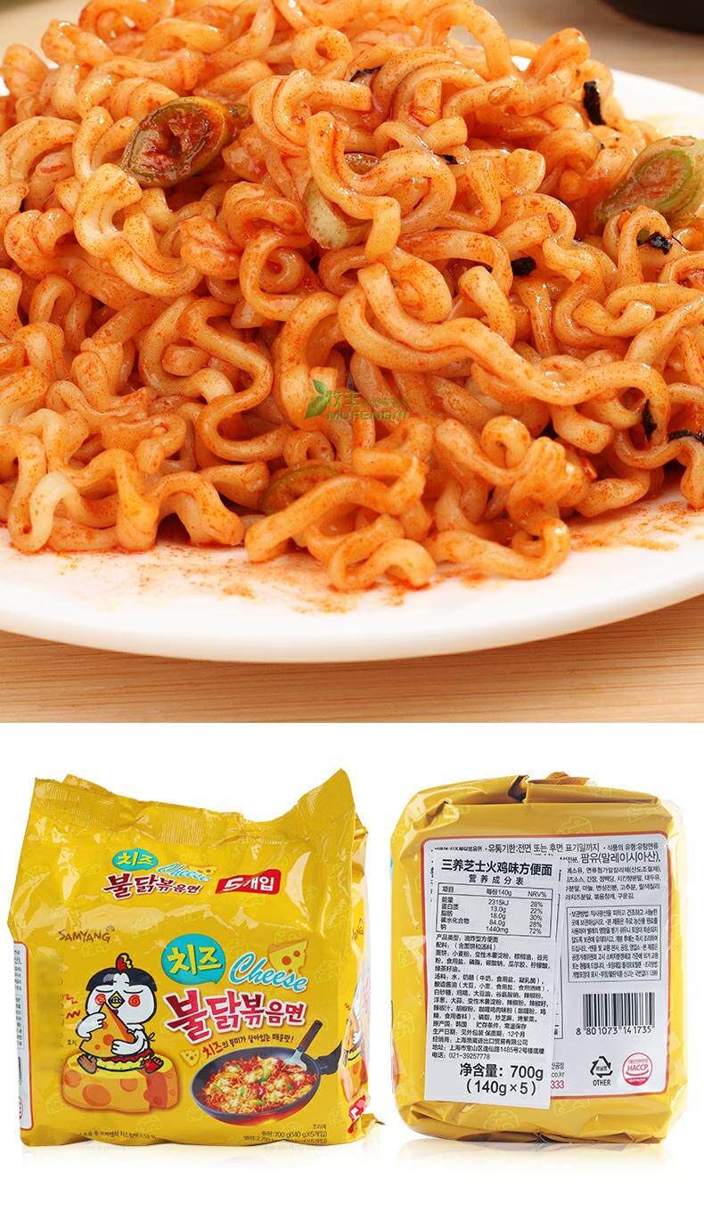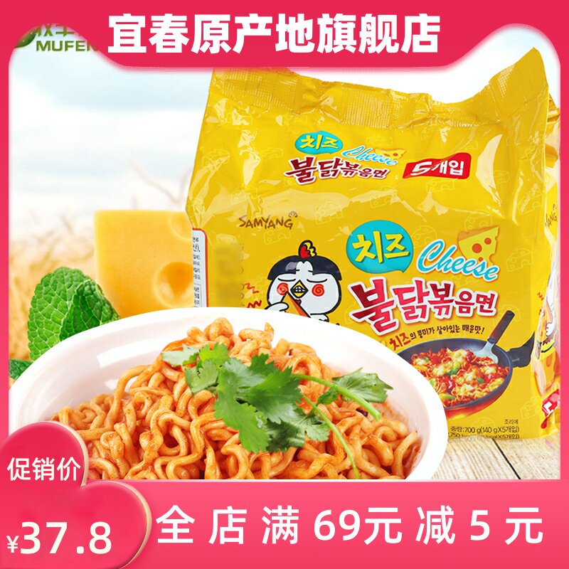Корейский Imported Мгновенная лапша Сырный вкус Поверхность 140G * 5 Сумка Жареное лицо Super Spicy Пузырь Куриная Сухая Смесь