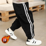 На мальчика Штаны осень-зима стиль замшевый детские западный стиль для отдыха спортивный полосатый Пушистый утепленный мужской ребенок свет Основные брюки прилив