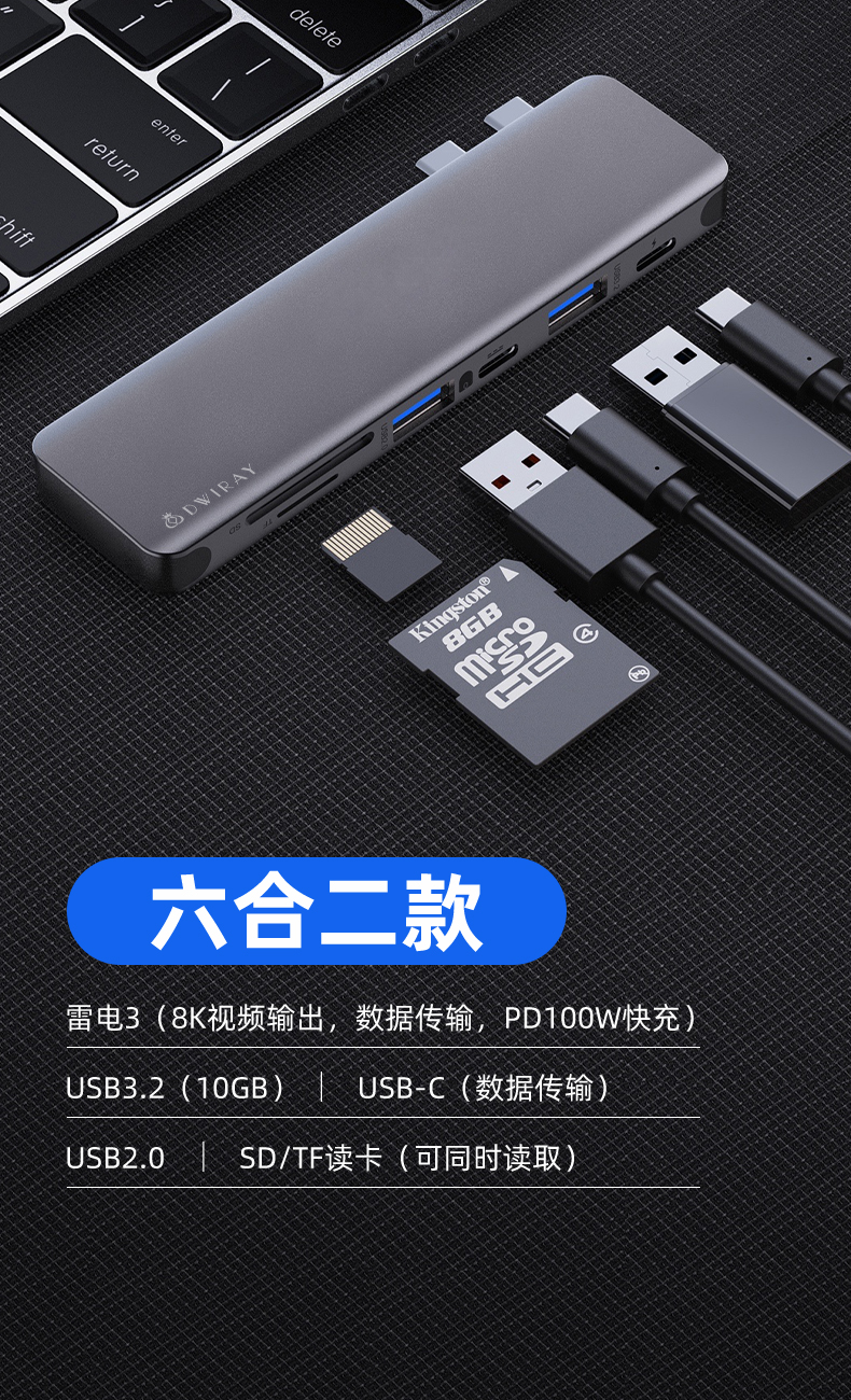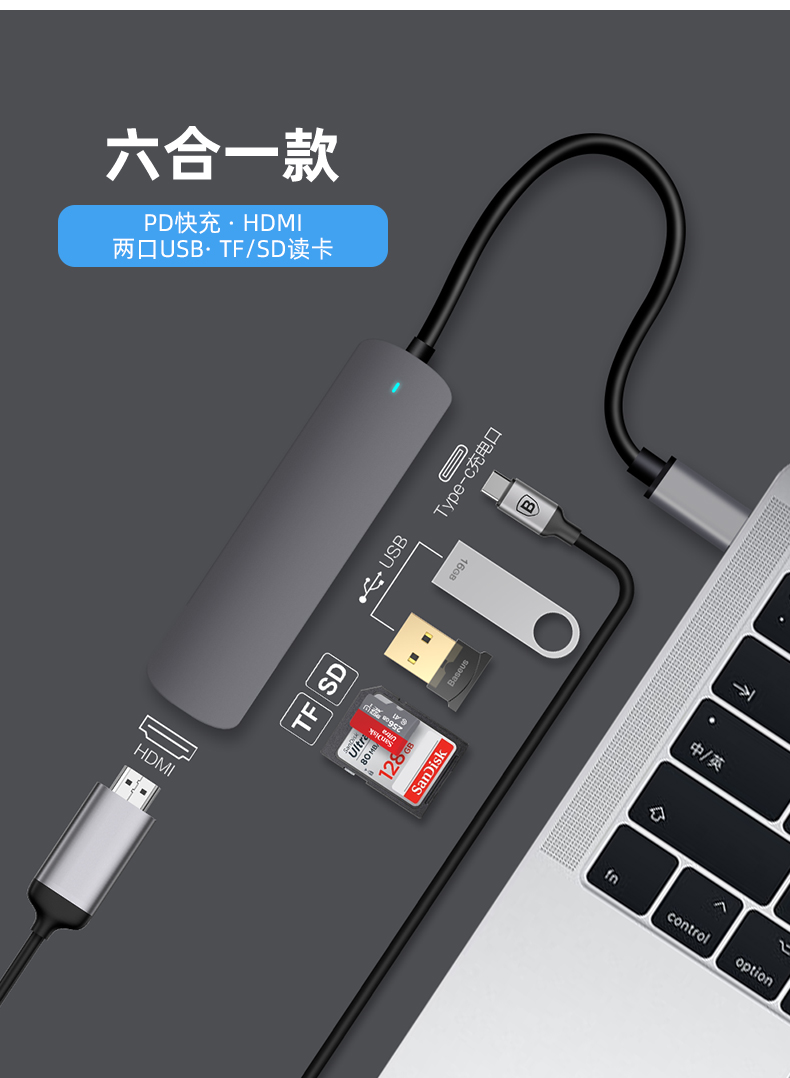 - 【 темно Пустой серый】HDMI + 2 Port USB3.0 + SD / TF Card Card + PD Fast Charge