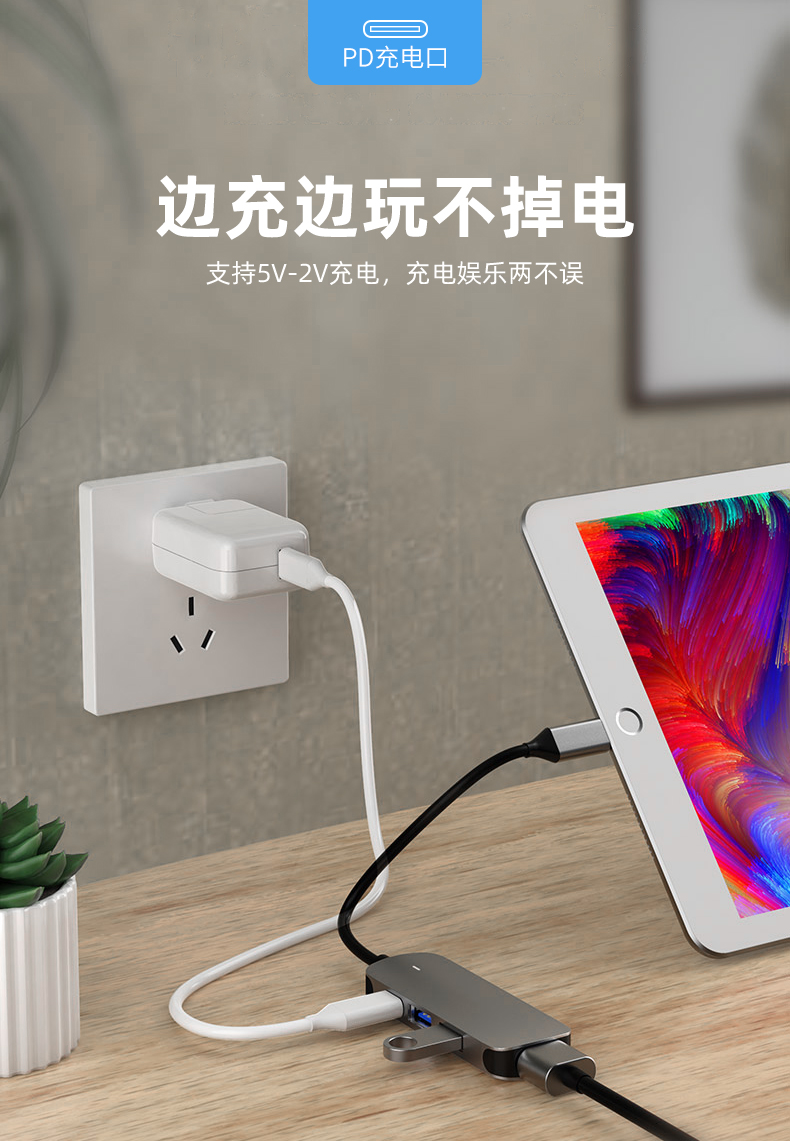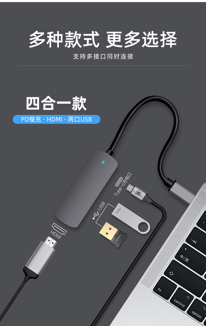- 【4 в 1】PD Fast Charge + HDMI + USB3.0 + USB2.0