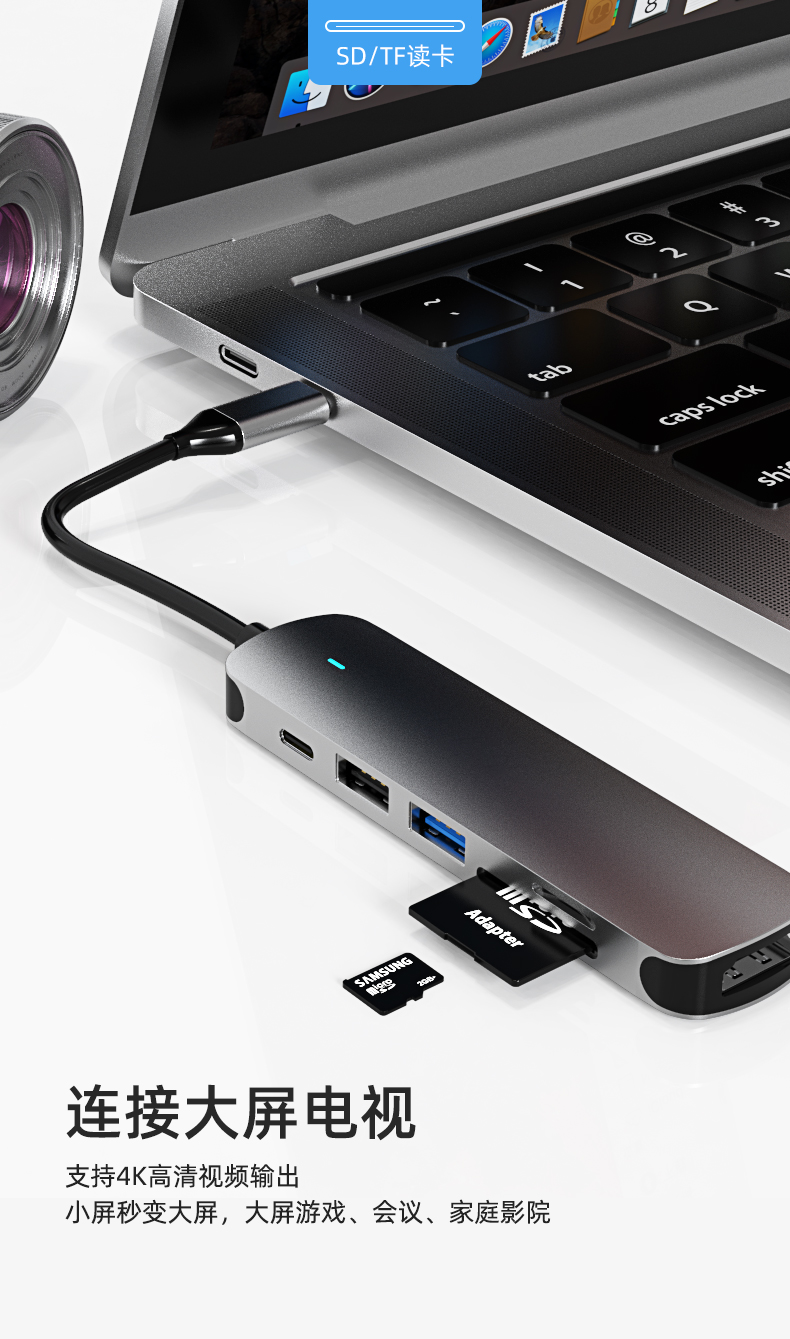 - 【 серебряный 】HDMI + 2 Port USB3.0 + SD / TF Card Card + PD Fast Charge
