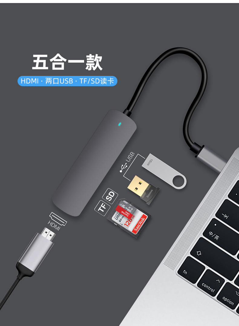 - 【5 в 1.】HDMI + USB3.0 + USB2.0 + SD / TF CARD CARD CARD