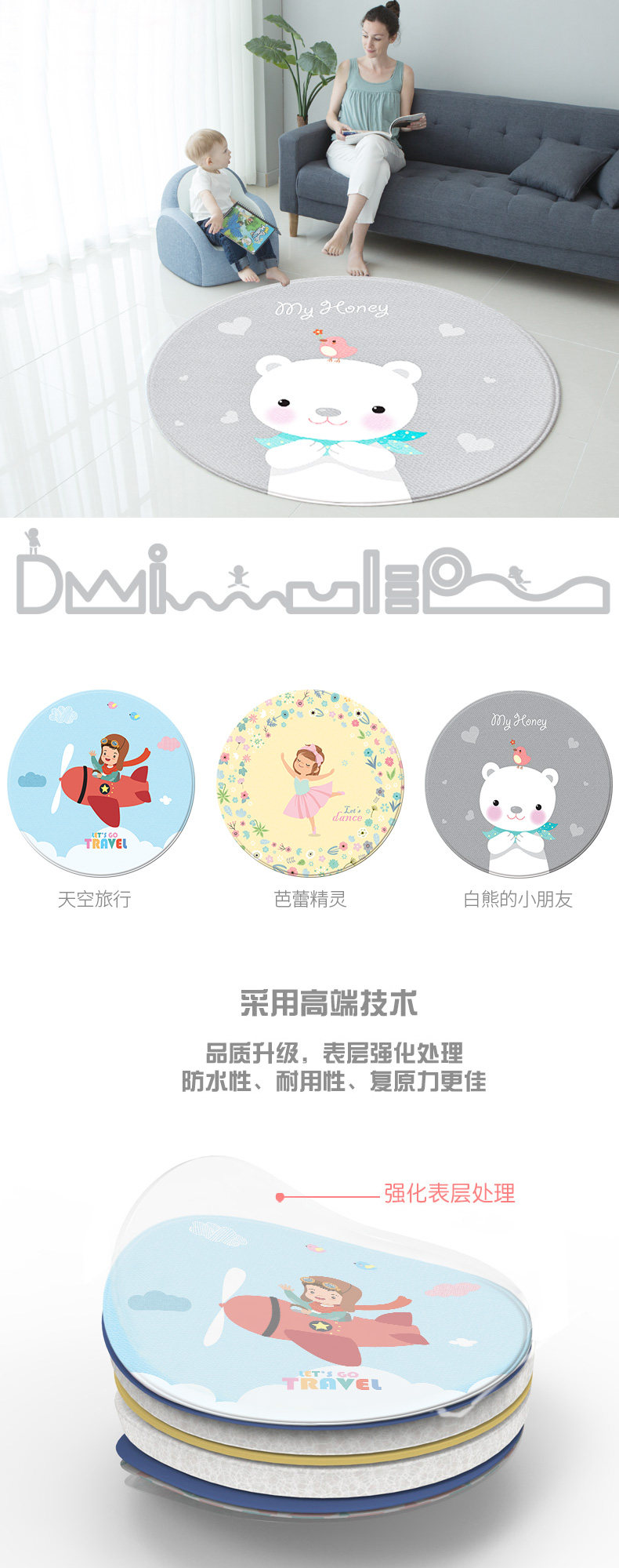 Корейский Импортированные экологически чистые воссоздание ползания PVC PVC детские Круглый этаж Матем утепленный Гостиная йога коврик танцевальный коврик