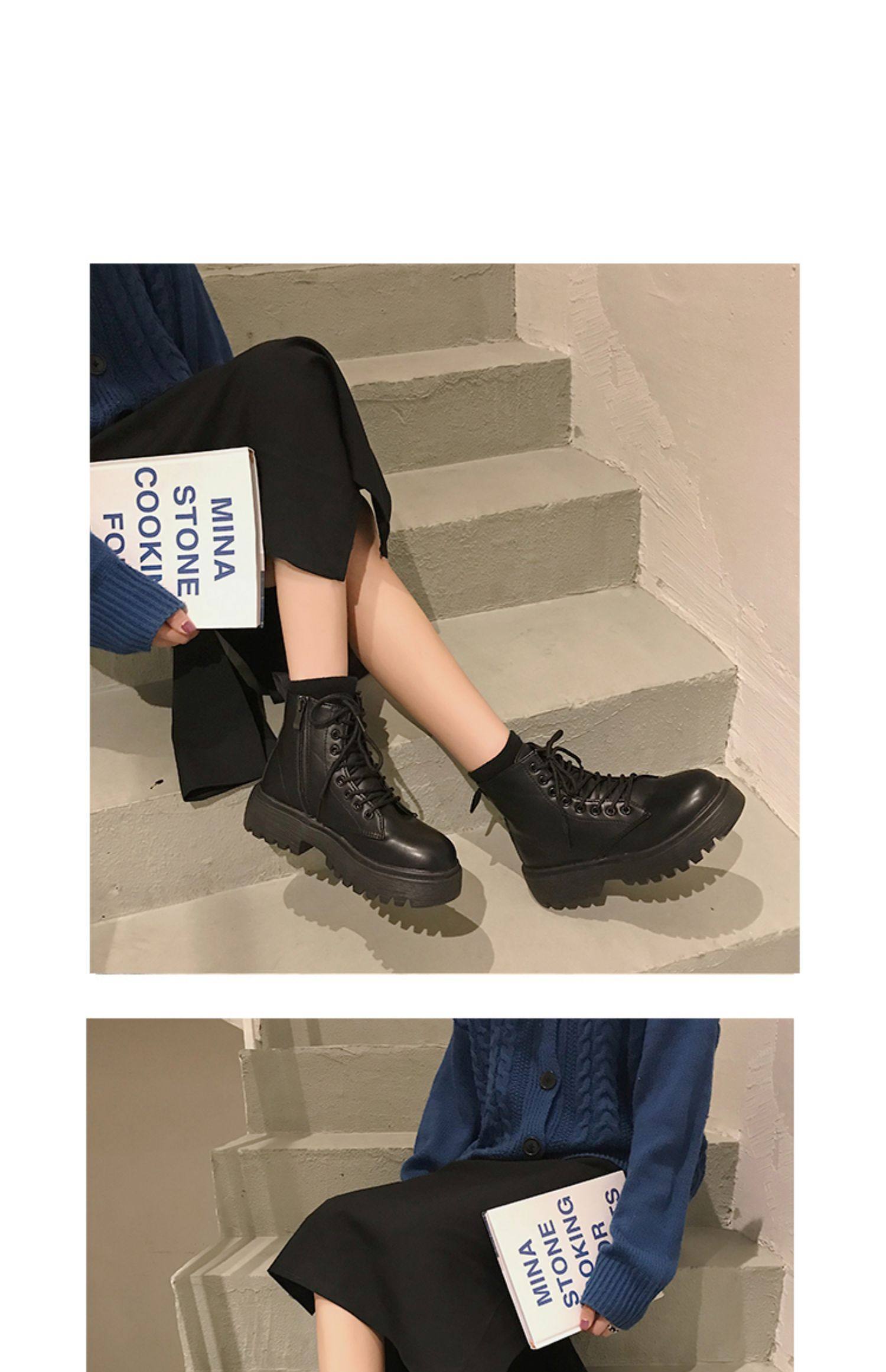 Берцы женский винтаж сапоги 2021 осень-зима новая коллекция chic широкий каблук Сотни красивых сапог толстая конец ботинки