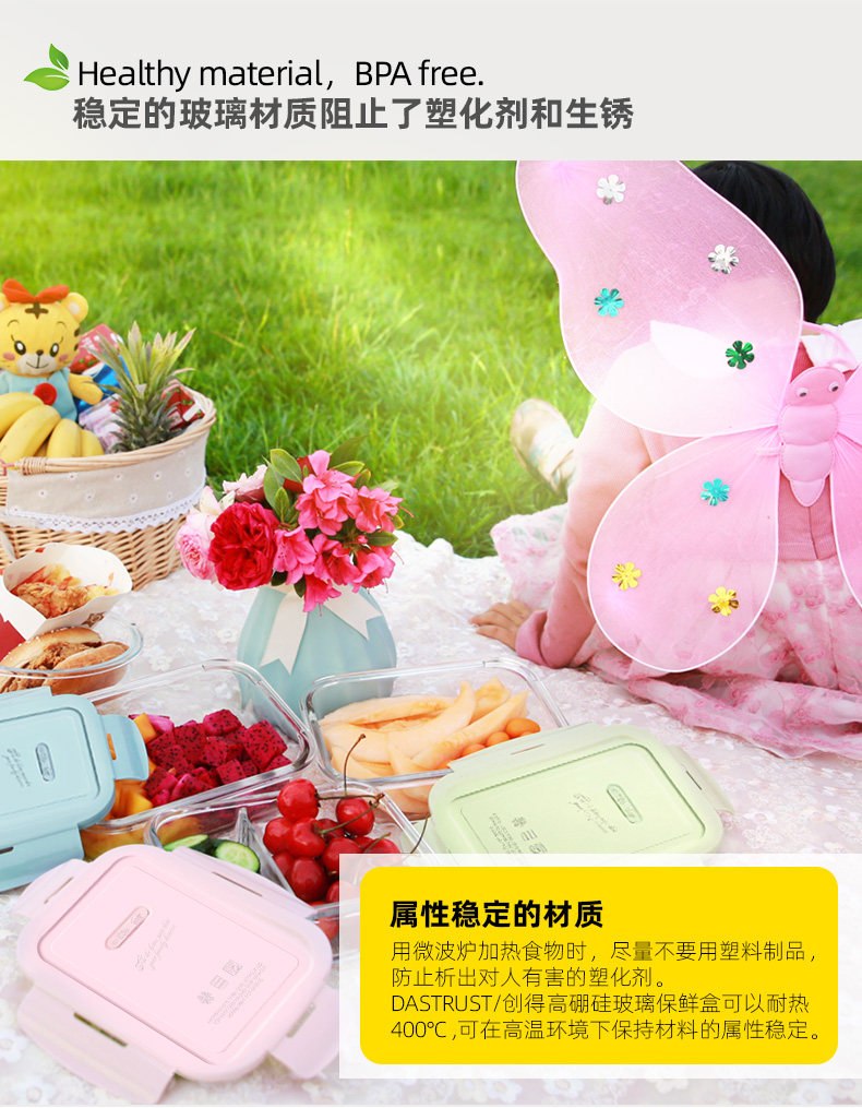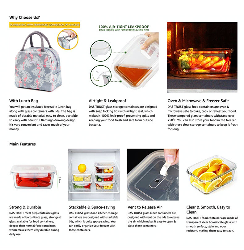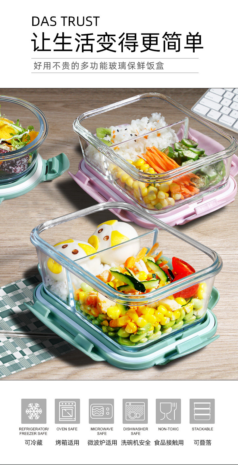 Консервация Box стеклянная коробка обеда - это чаша, запечатанная коробка холодильник для органайзер Микроволновая печь с большой емкостью плюс тропический корпус