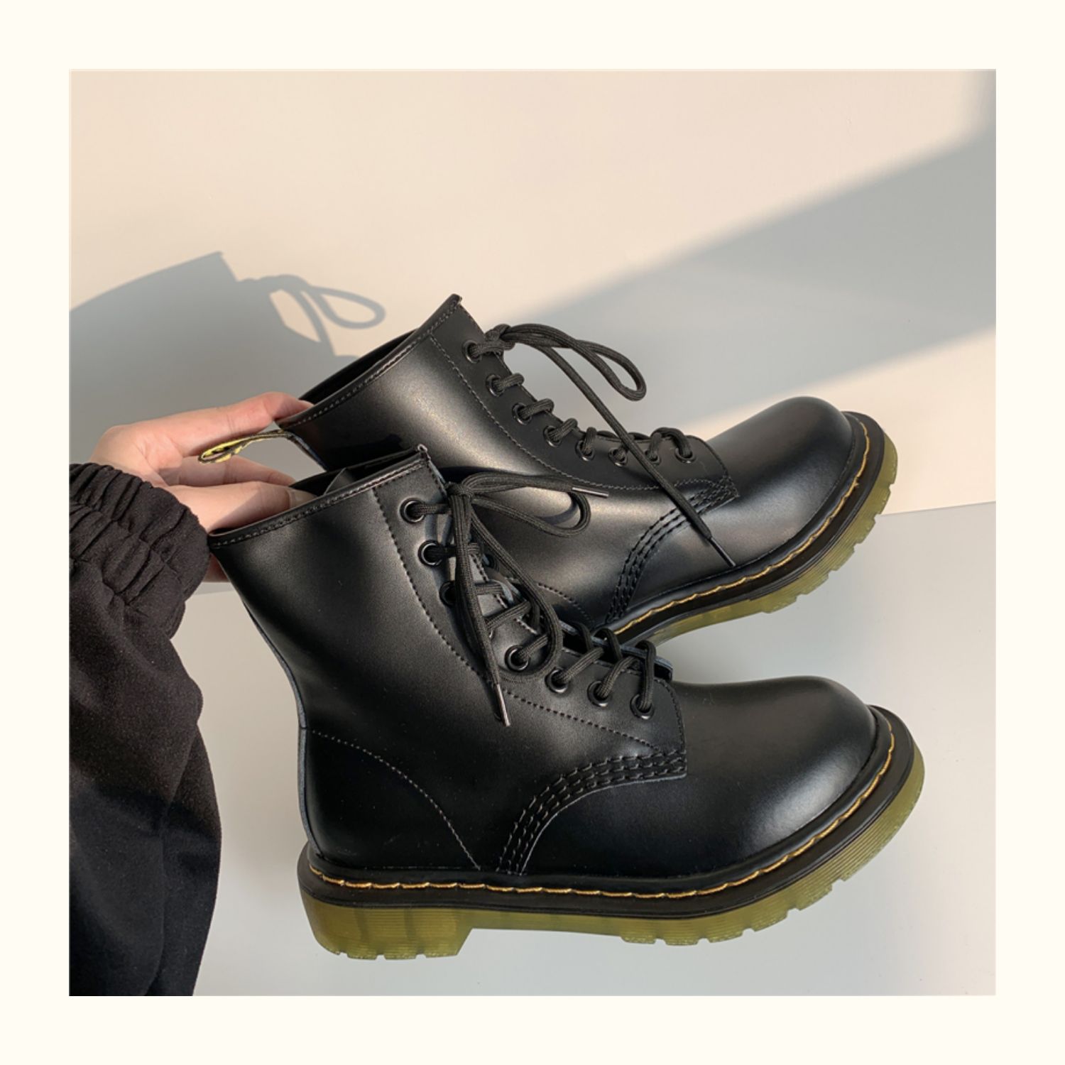 Ван Чи есть полосатый Собака 2021. осень-зима новая коллекция Личность дикая кдж берцы женский для влюбленной пары стиль Прилив рыцарь сапоги из натуральной кожи