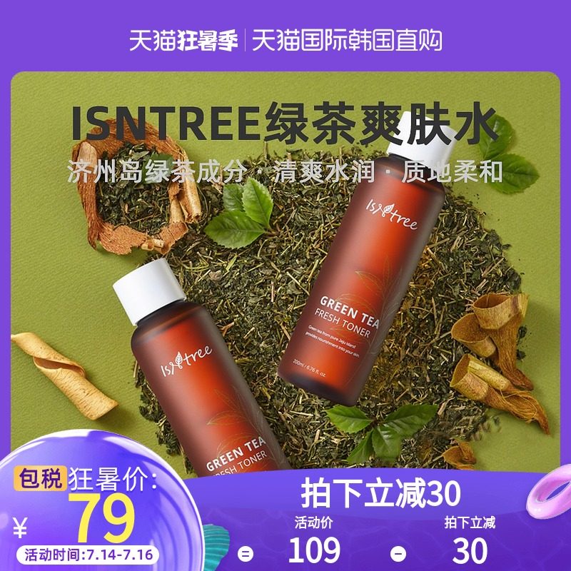 Корейский Прямая почтовая рассылка Isntree Green Tea Toner 200ml темно Увлажняющий, увлажняющий, успокаивающий, нежный и не раздражающий