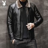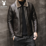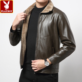 Playboy. кожаная одежда мужской куртка зимний большой размер замшевый утепленный кожзаменитель жакет молодежный для отдыха перемена меховой воротник Зимнее платье