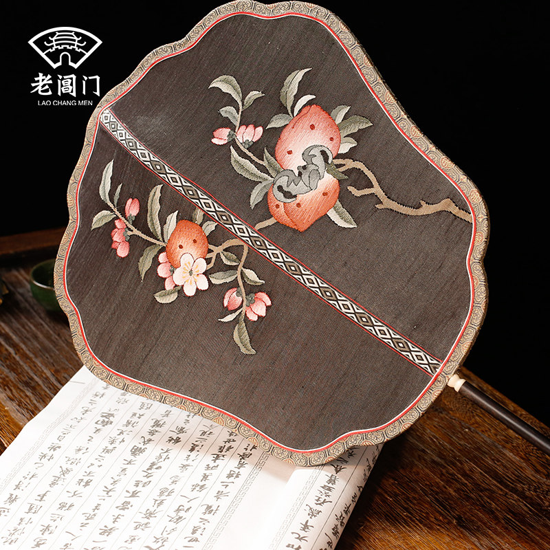 Копия Запретный город черный Долголетие Персиковый цветок Кеси Кеси Туан Фан Древний стиль Ханфу Веер Круглый веер Древний классический Веер круглый веер старинный стиль