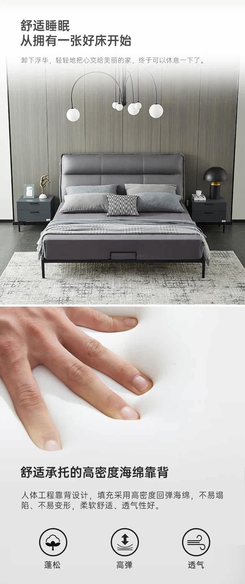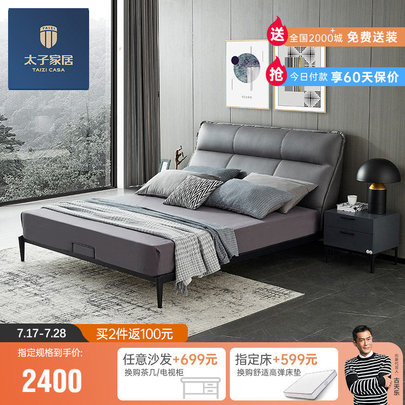 Домой принца поколение Простой из натуральной кожи Кровать Главная Спальня Спальня Двуспальная кровать 1.8M Soft пакет Кожаная кровать свадьба кровать дс-0074