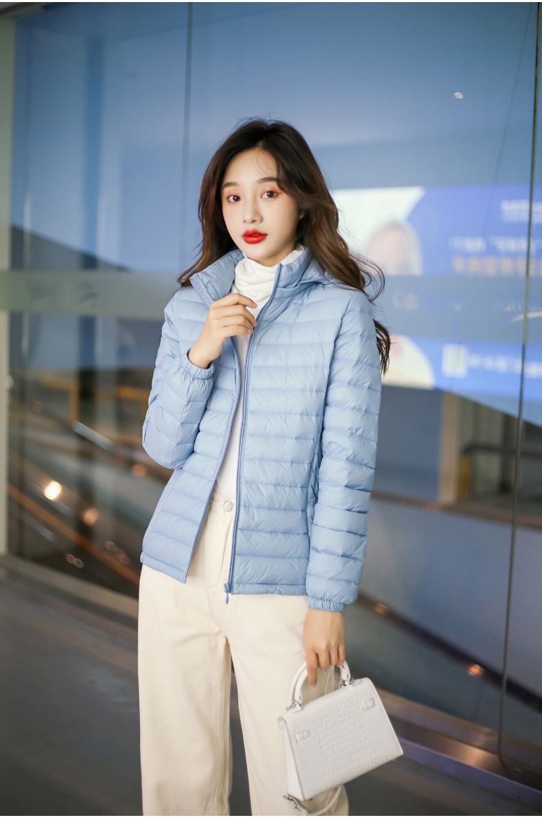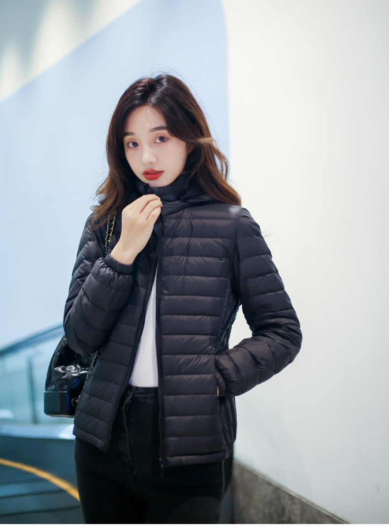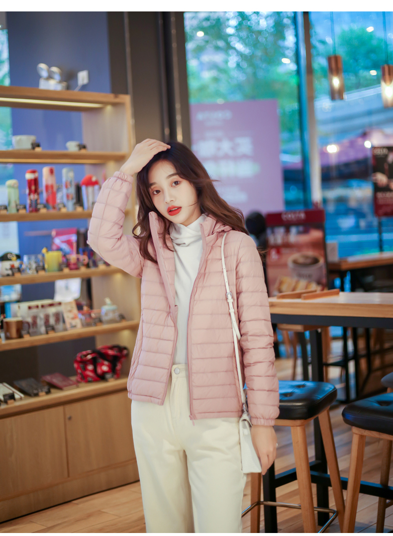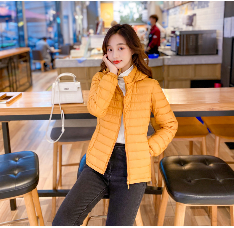 2022. новая коллекция Тонкий пуховик женский короткий капюшон стоячий воротник популярный Тонкий стиль осень-зима Женщина куртка Шапка с удалением