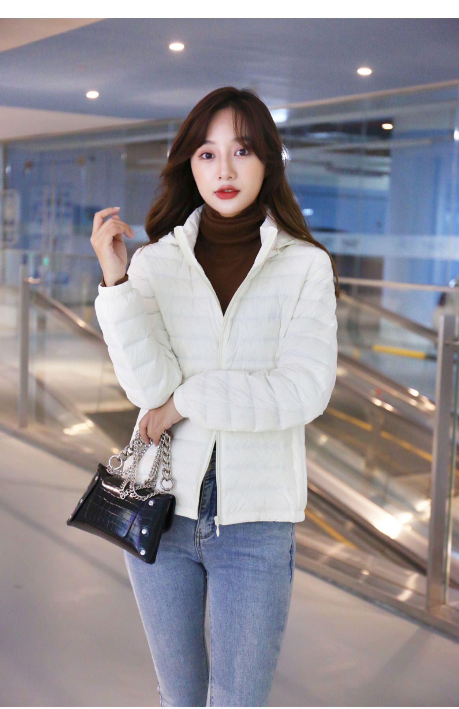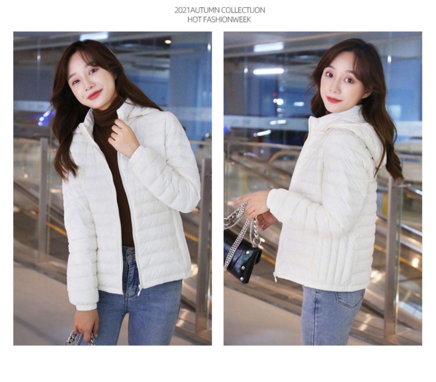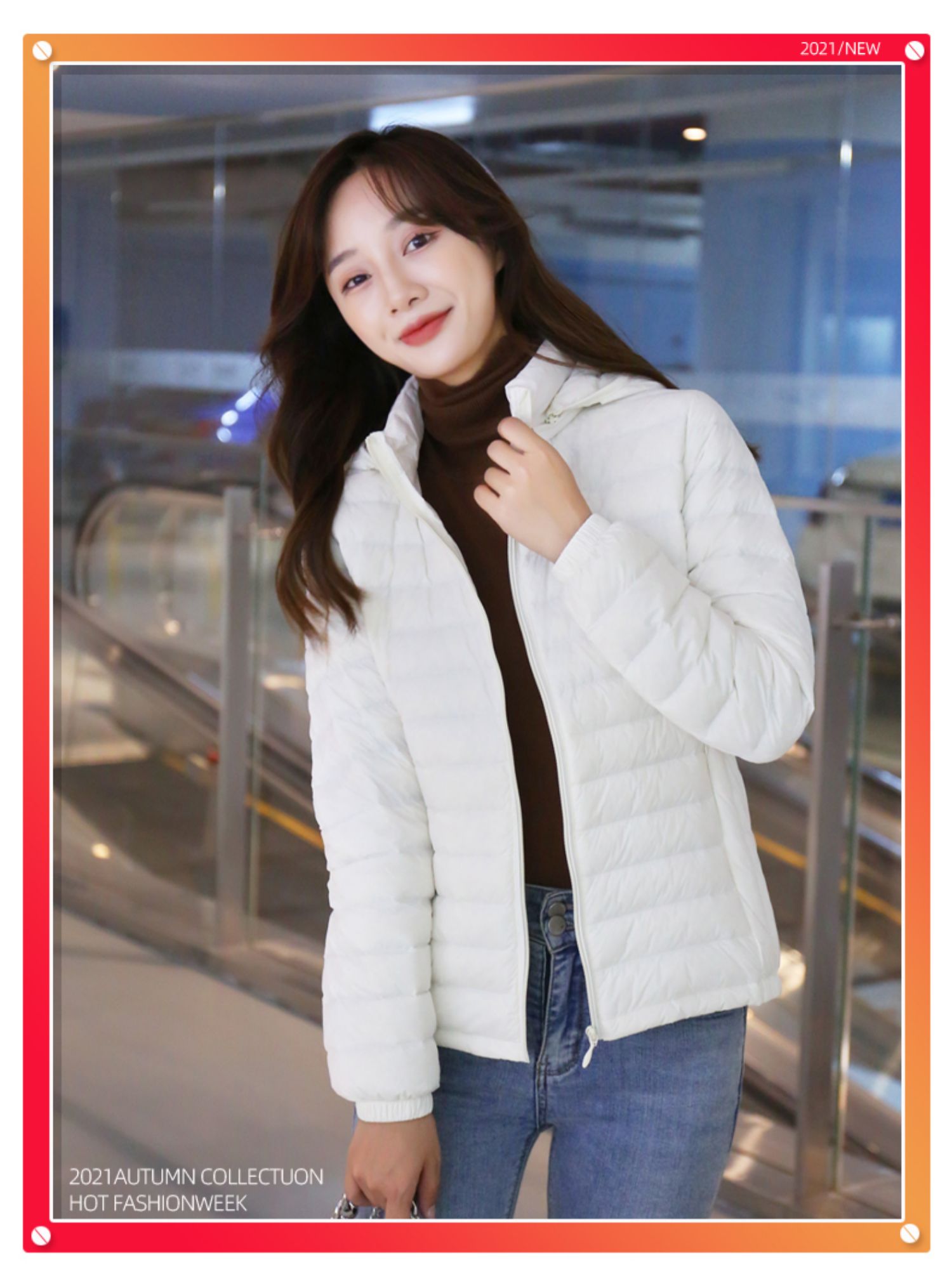 2022. новая коллекция Тонкий пуховик женский короткий капюшон стоячий воротник популярный Тонкий стиль осень-зима Женщина куртка Шапка с удалением