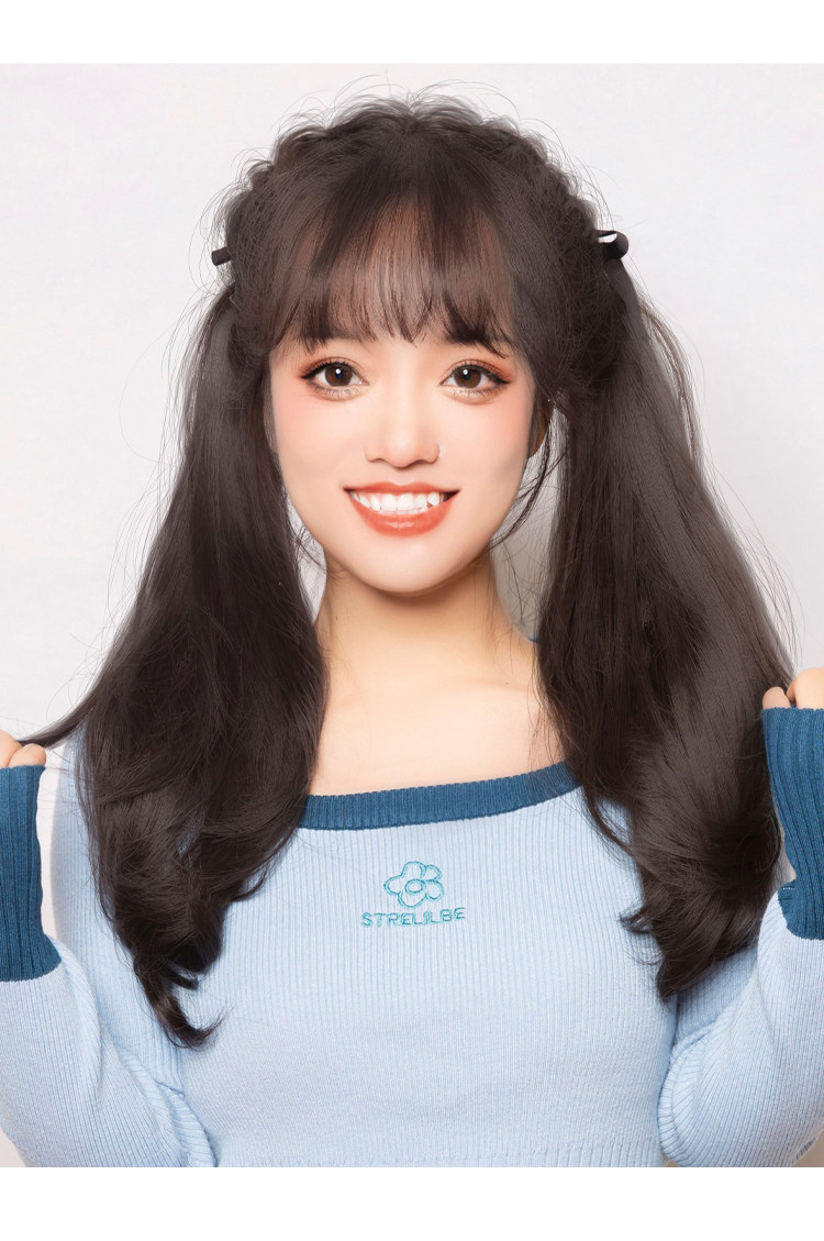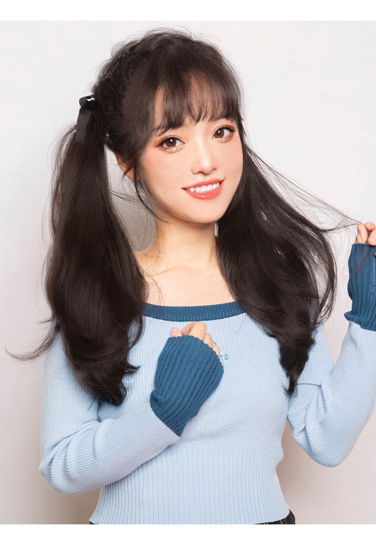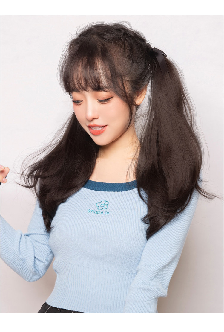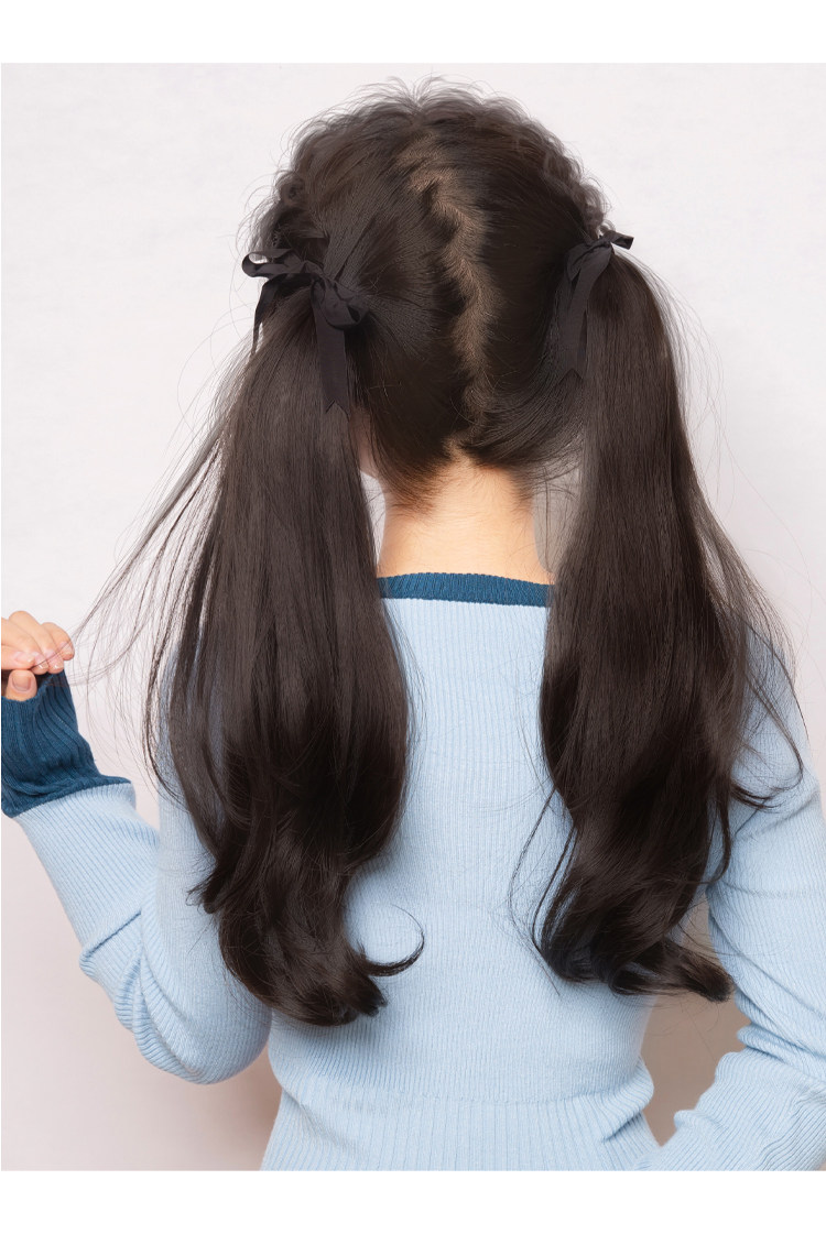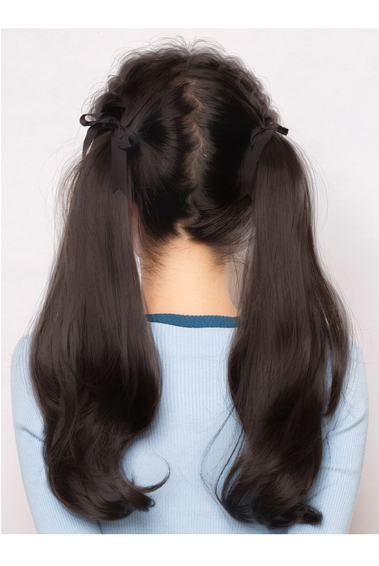 Ультра-светлая двойная лошадь хвост Парик, женская длинная вьющиеся волосы ленты JK милая лоли копия Реалистичные большие волны