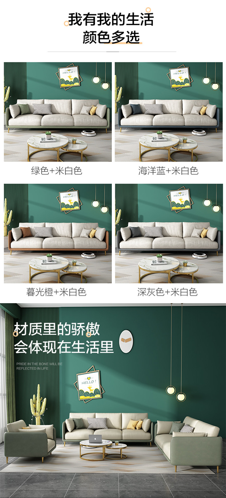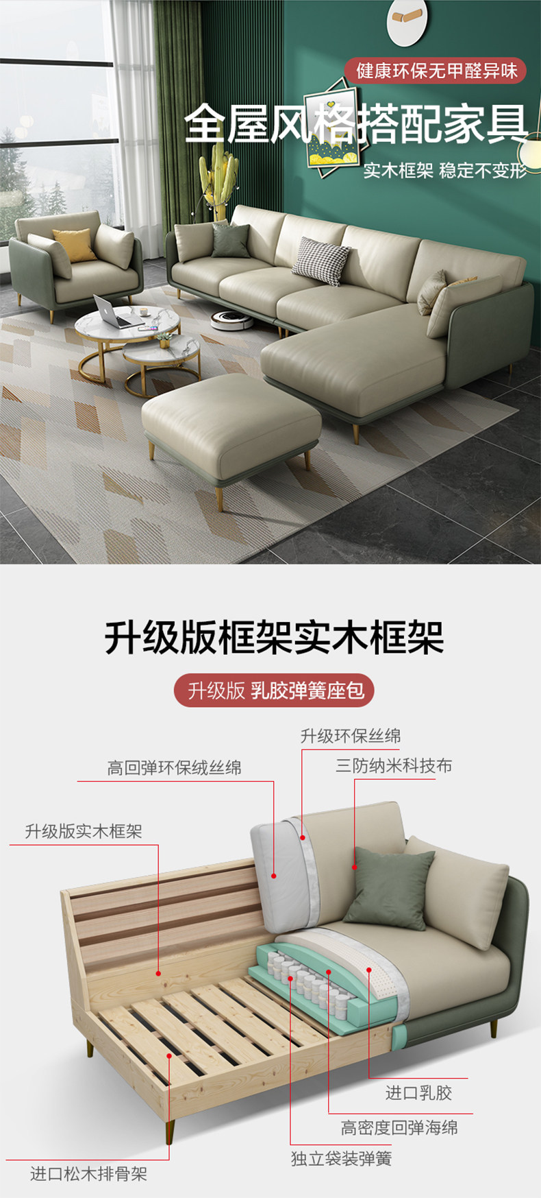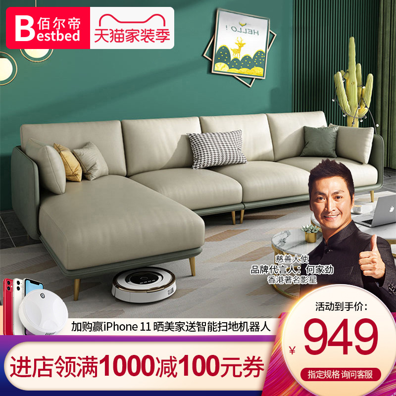 Light Luxury Technology Ткань Три Диван Маленькая квартира Nordic Гостиная Прямой Двойной Латекс Диван Простой поколение Бесплатно