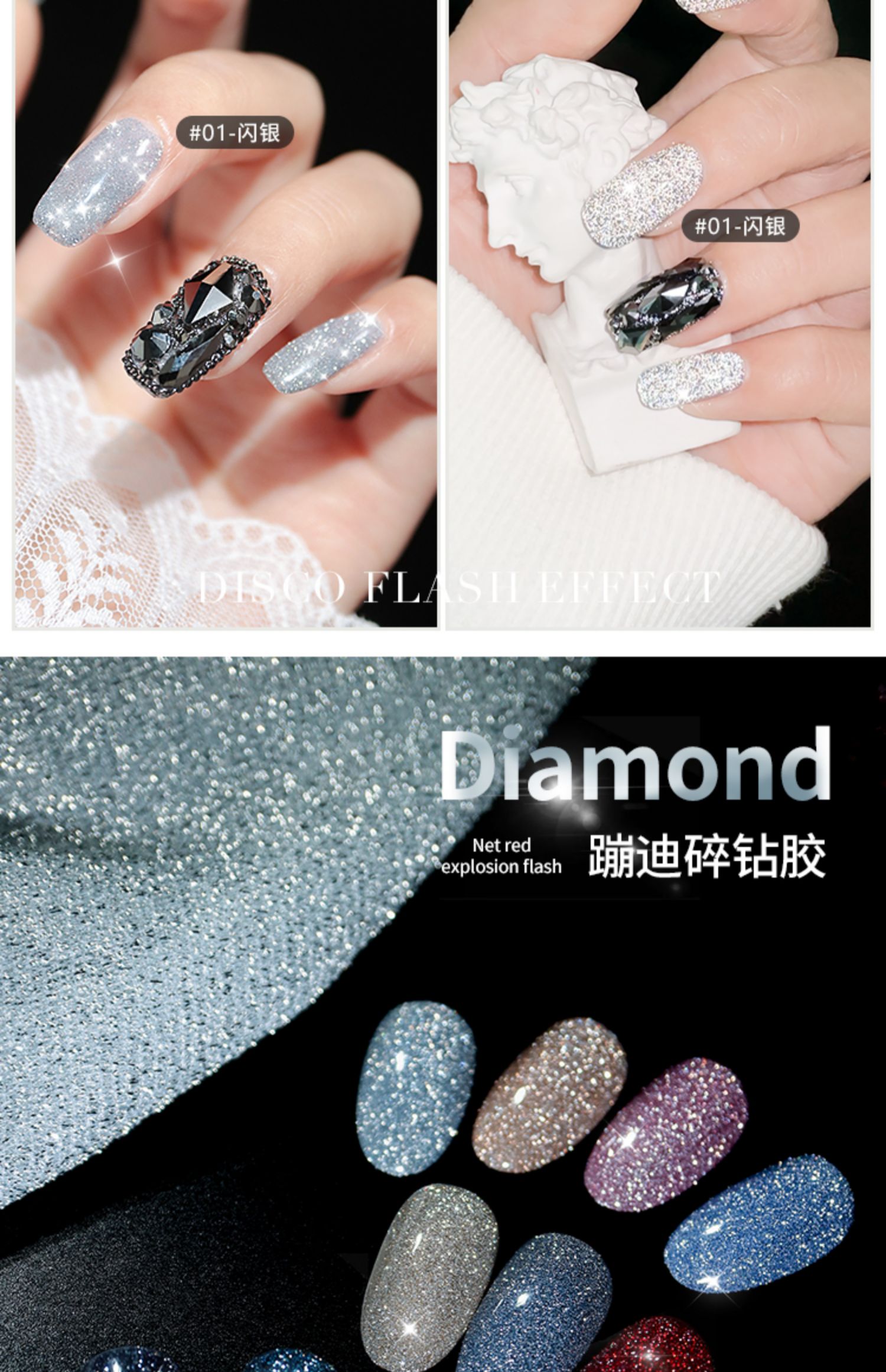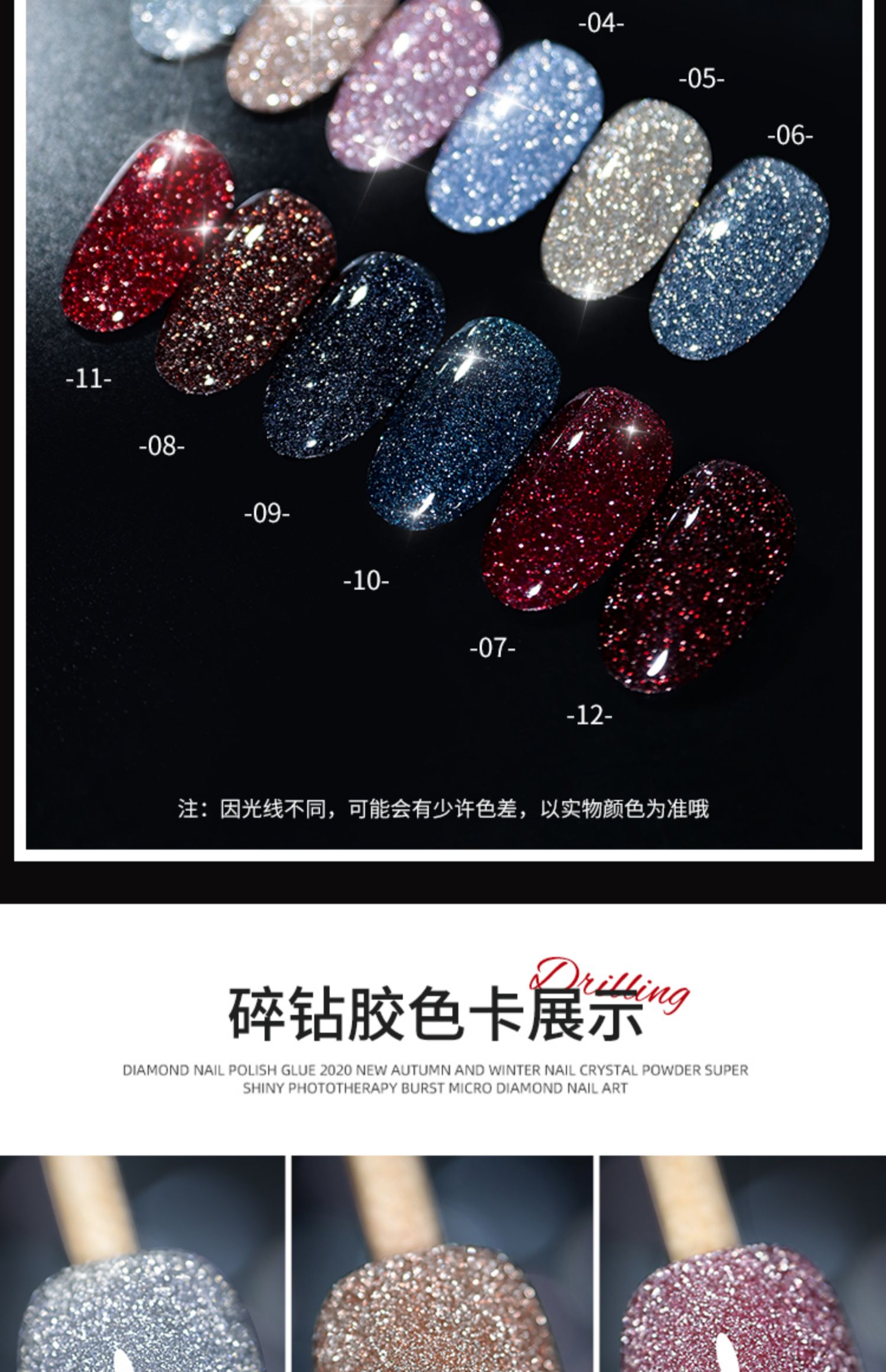 Сеть красный Взрывоопасный фрагментированный алмазный клей 2021 новая коллекция Nail Art Crystal Diamond Bengdi Powder Клей для лака для ногтей Сияющий тонкий блестящий клей для фототерапии ногтей