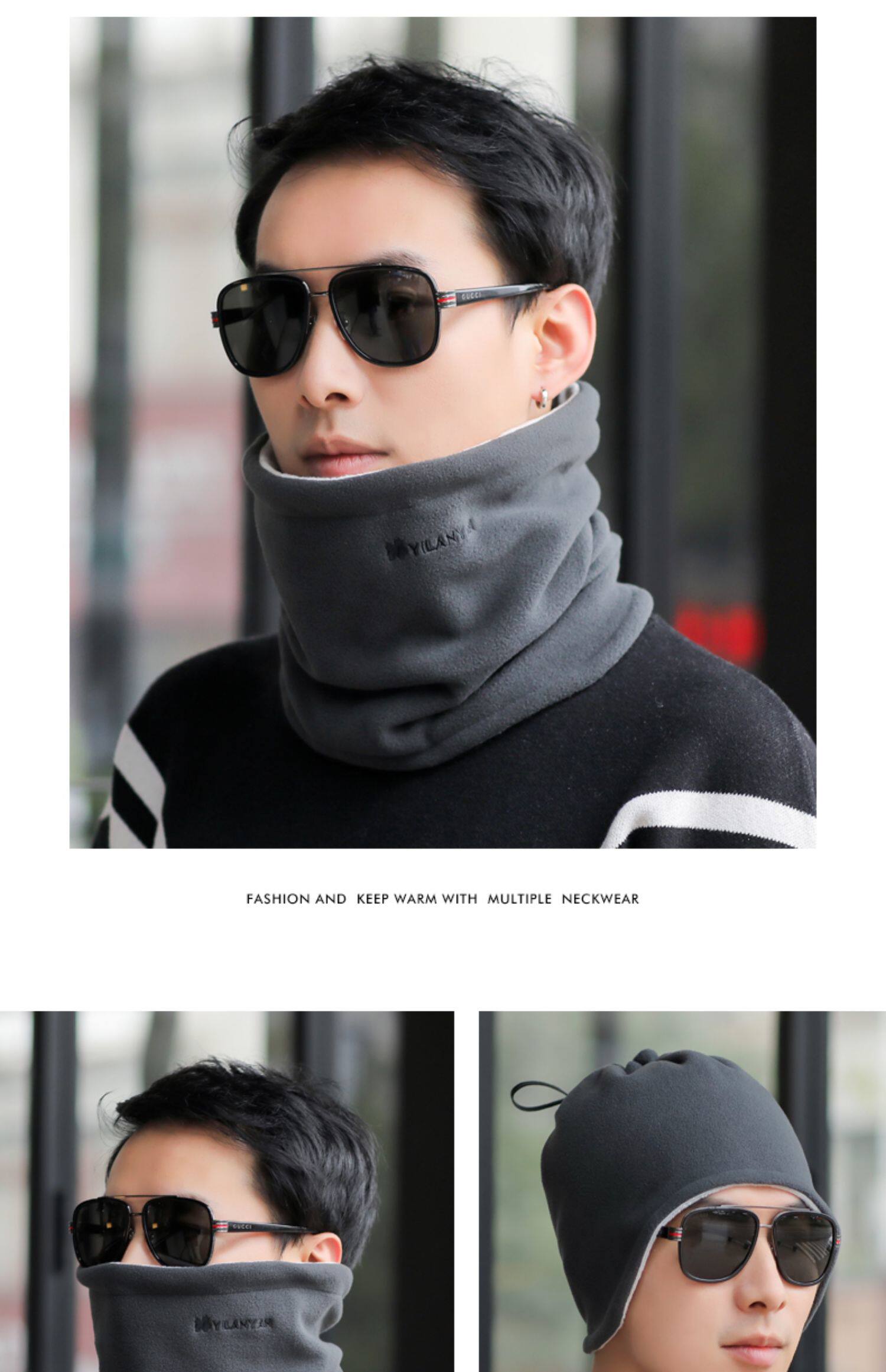 Шарф мужской зима удерживающий тепло утепленный Шейный позвоночный воротник корейская версия Дикий шарф Езда холодно шарф Интегрирован шапка