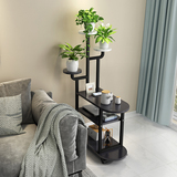Цветочный полка живущая комната Стиль пола Простая сторона Несколько балконных многослойных кованых железной камеры Цветочный горшок с зеленым воротником
