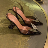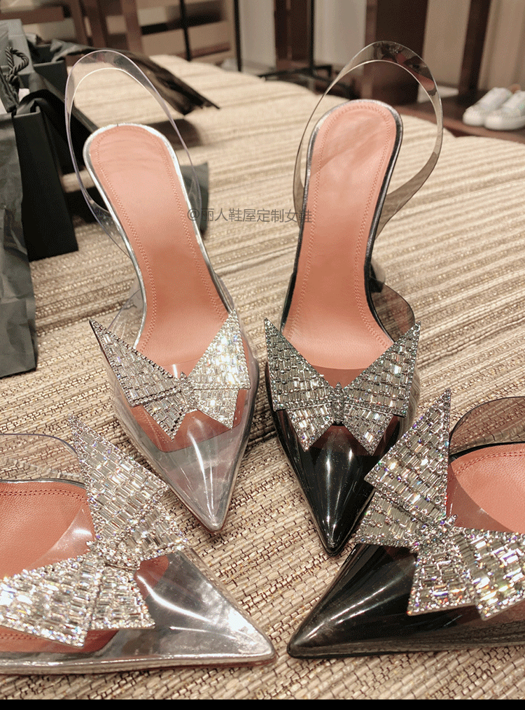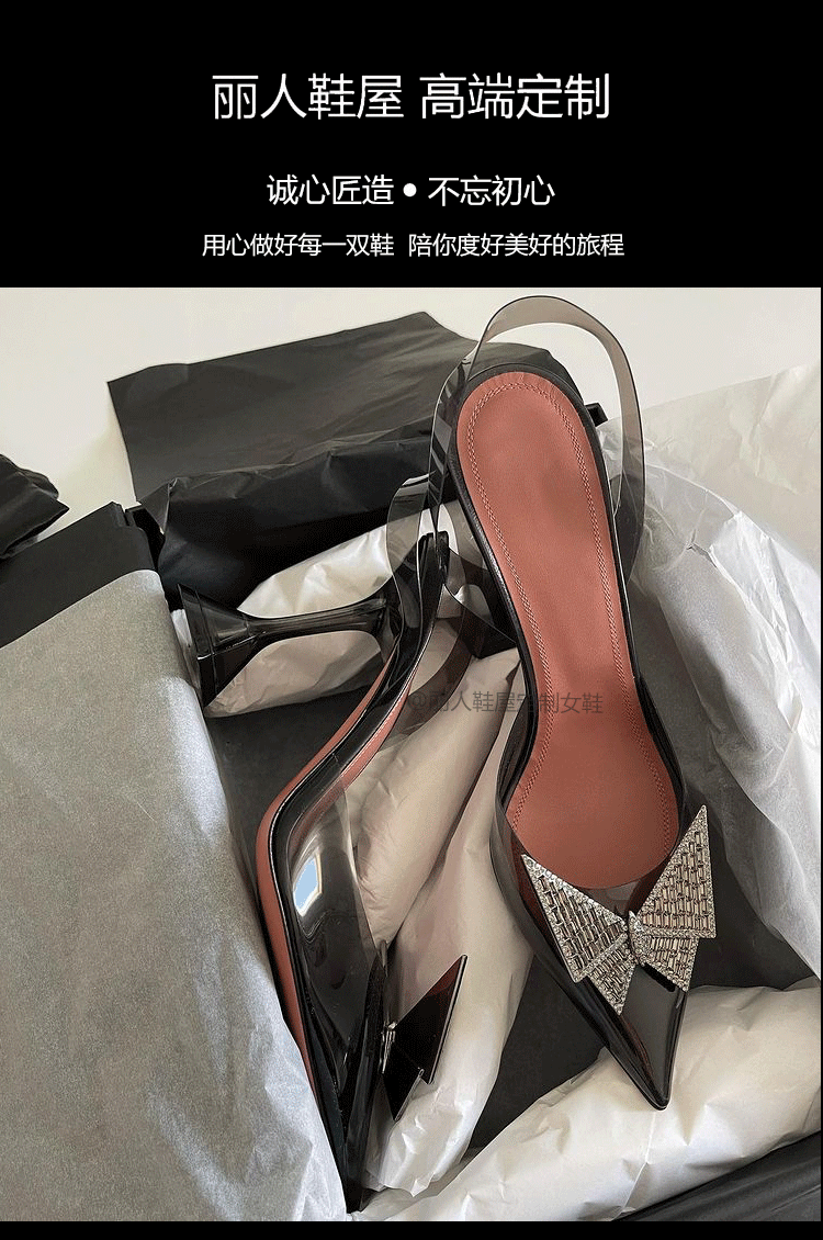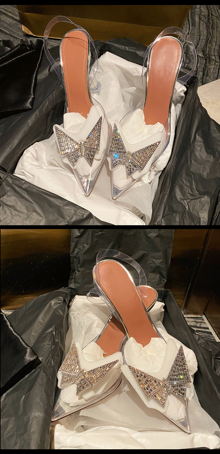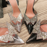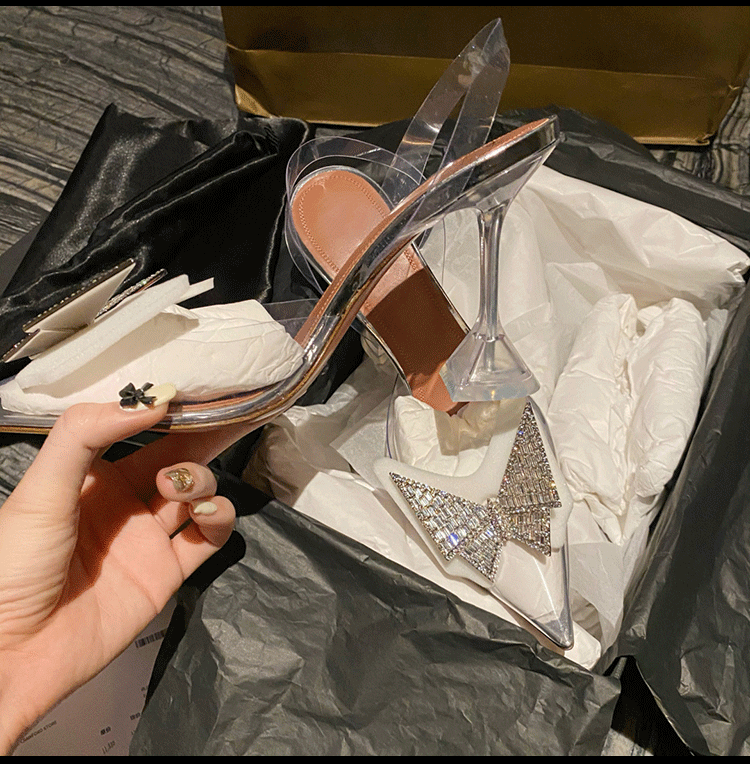 Пакет Голова прозрачные сандалии женщина 2022 новая коллекция лето прогрессивный бантики Кристалл нормально с острым носом Водяная дрель на высоком каблуке обувь