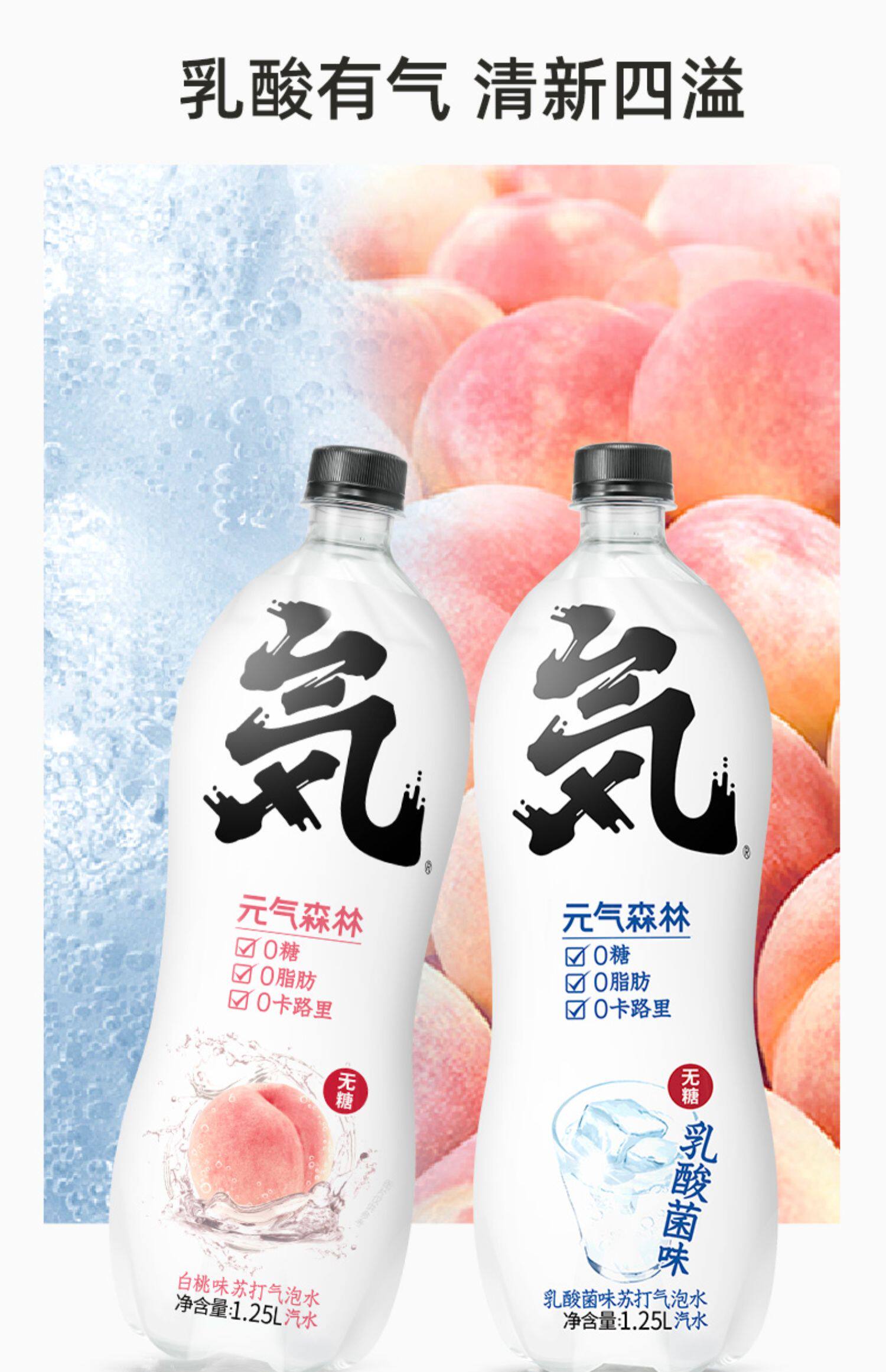 YUANQI FORES FUQI Новый год 0 сахар 0 Губ 0 Бутылки карты белый Тао вкусный сода Split 1.25L * 6 бутылок