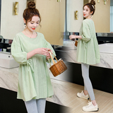 Беременная женщина осень комплект популярный женский новая коллекция Свободный чистый хлопок рубашка верх Из одежды корейская версия Размерная кукла рубашка