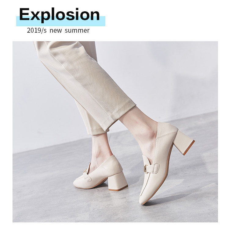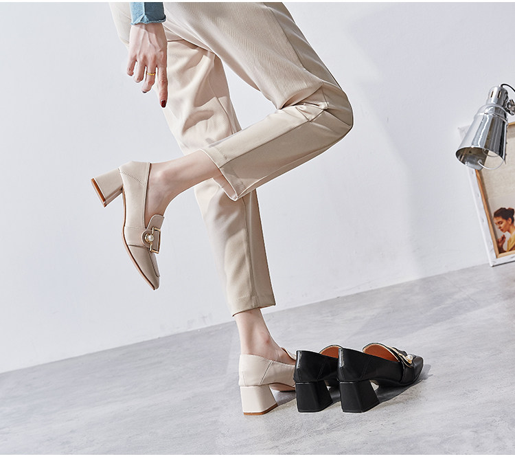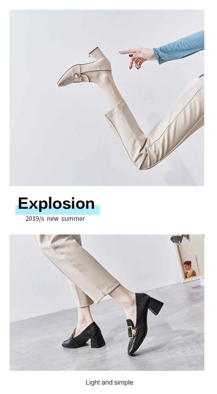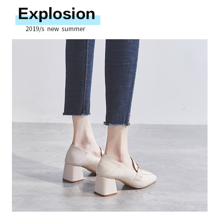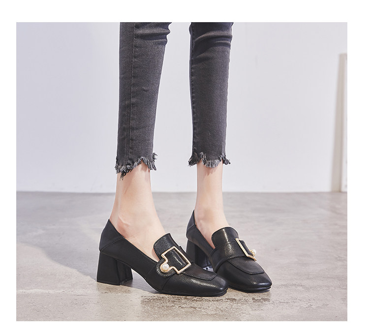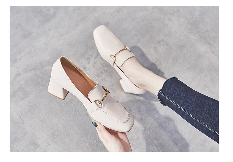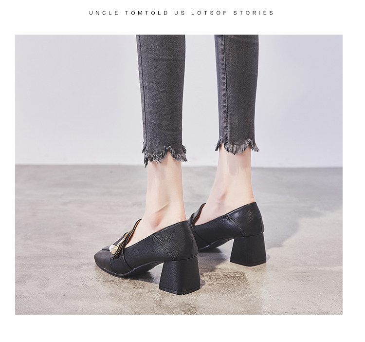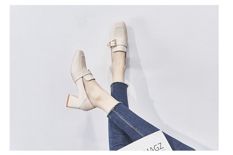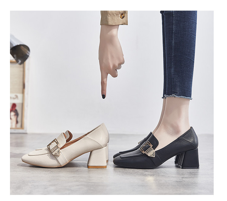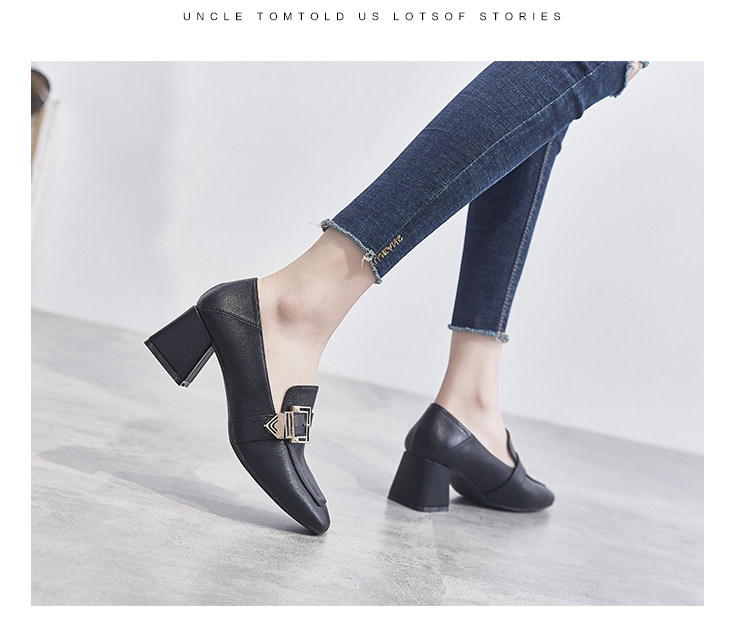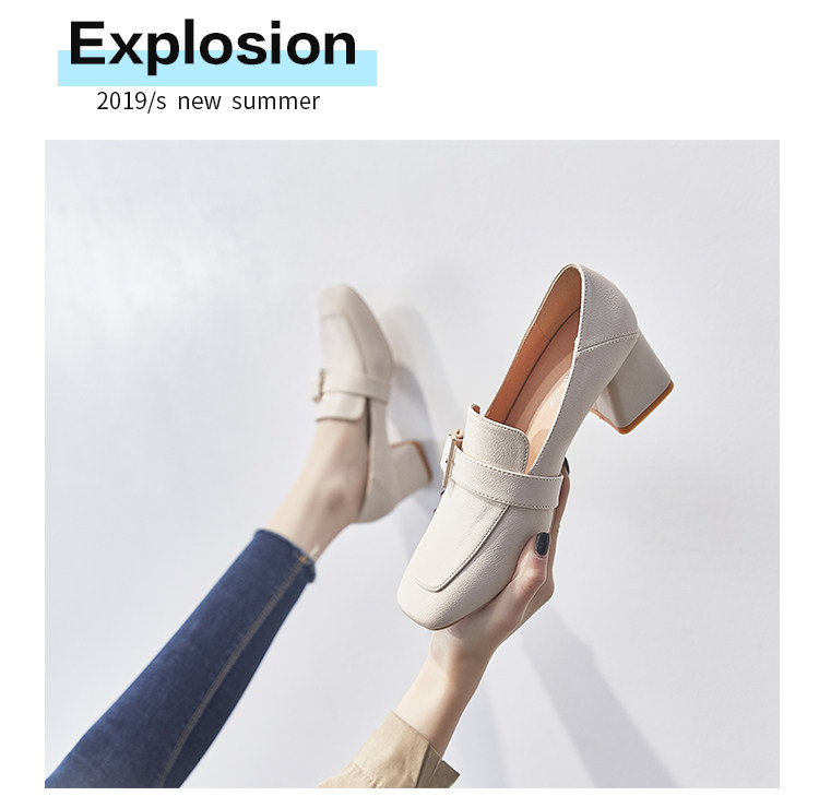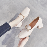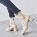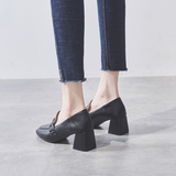 Широкий каблук туфли Женский 2021 новая коллекция демисезонный Сезонная универсальная женская обувь винтаж небольшой кожаная обувь Лоферы на среднем каблуке на высоком каблуке обувь