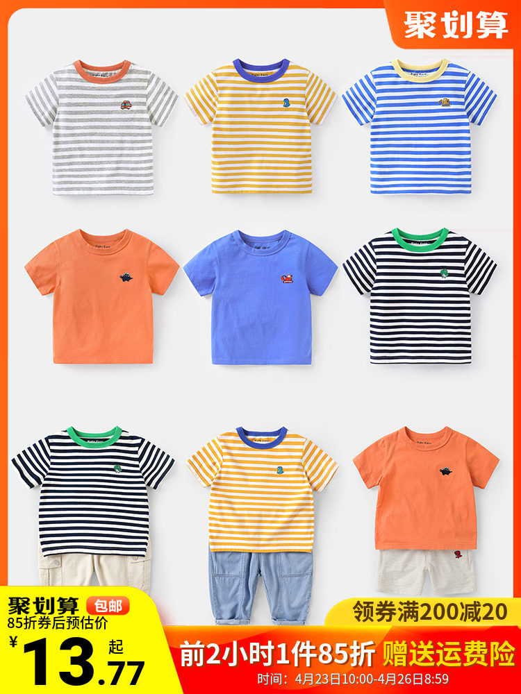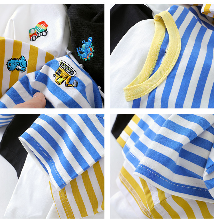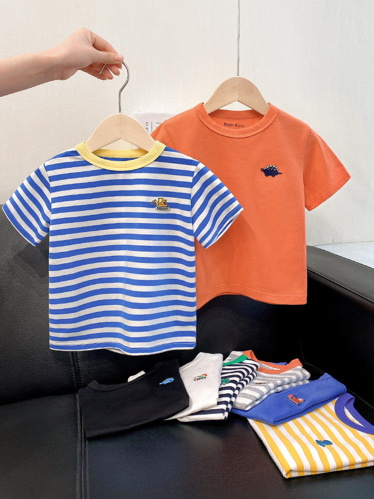 На мальчика полосатый принт короткий рукав Футболка Летнее Летнее Платье детское детские детские 1 год 3 детей на младенца Половина рукава стиль верх Одежда