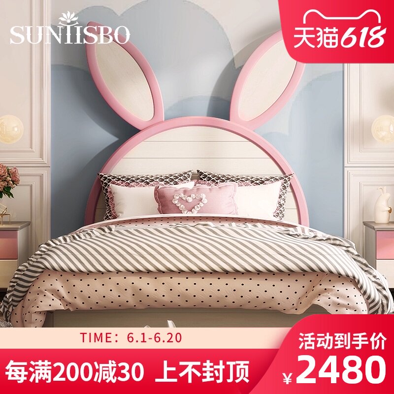 Санкт-Тисбург кролик Кровать с большим ухом детские кровать полностью Твердое дерево розовый для маленькой принцессы Кровать девочка мультфильм большой ребенок девочка кровать