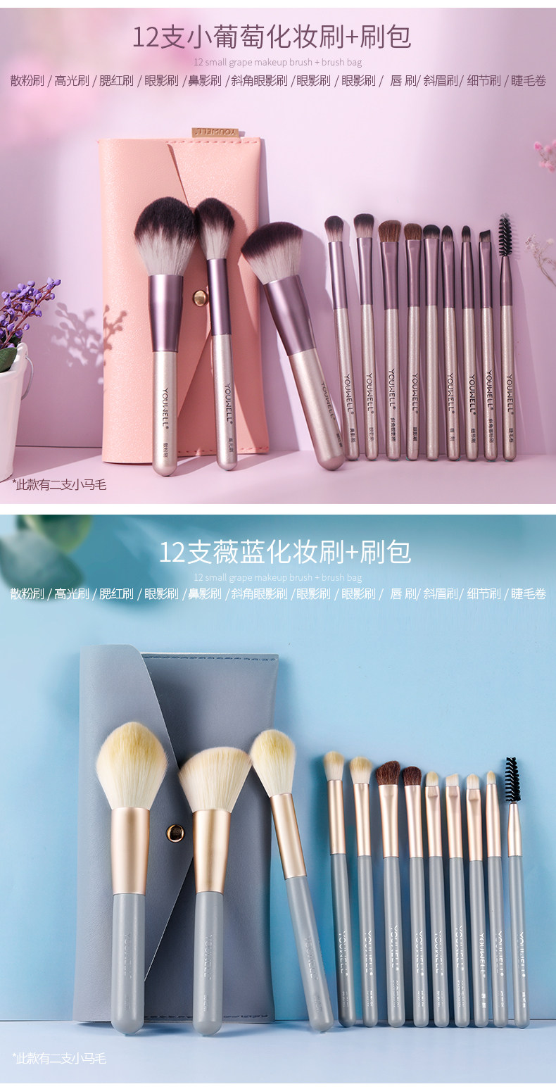 - 【Репутация】12 маленьких винограда кисти для макияжа +(Щетка)+.(щетка пакет )