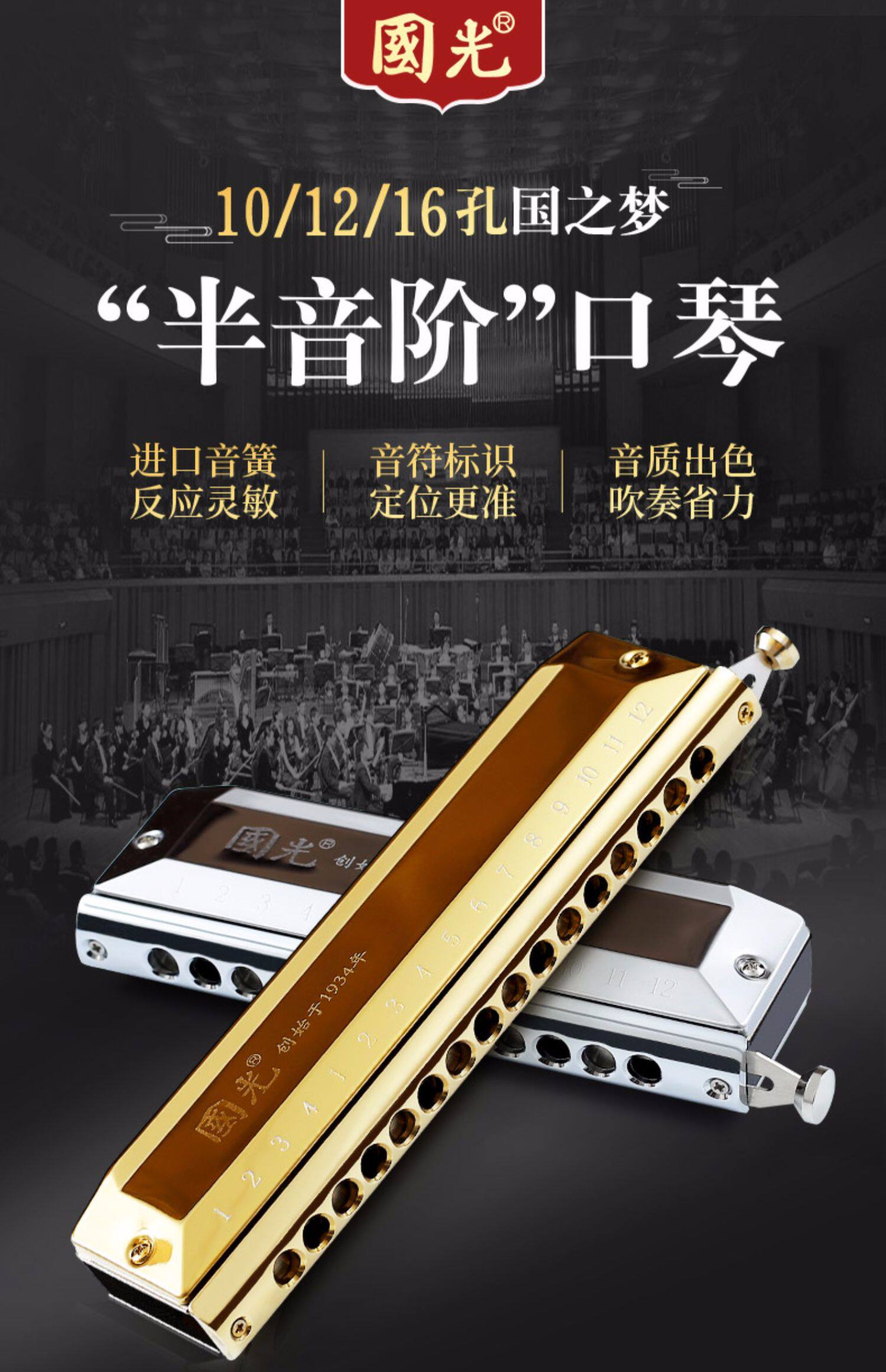 【Tmall】Guoguang полутоновый оркестр 10/12/16 Ho Kong взрослый детские войти дверь Музыкальный инструмент для начинающих студентов Профессиональная производительность