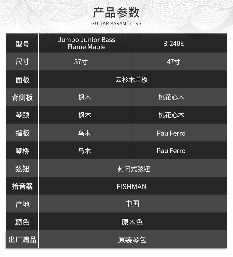 Американская гильдия Jumbo младший пламя клена лица один B-240E Электрическая коробка Mu Bausbe
