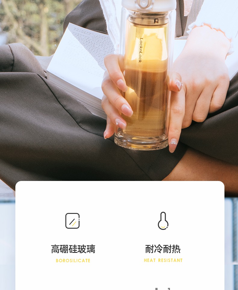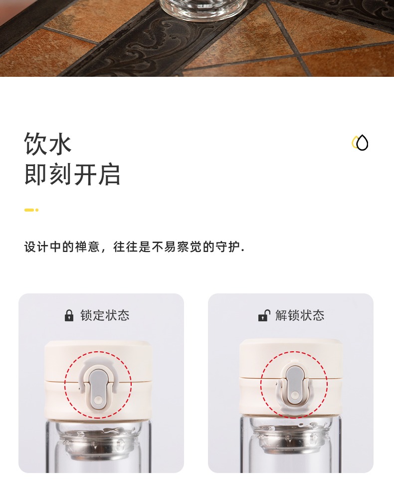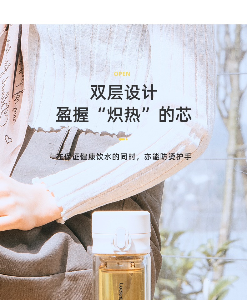 Весело с застежкой весело с застежкой двухслойный Стекло женщин минималистский портативный термический анти горячей водяной чашки мужской Чашка для чая бытовой чашки