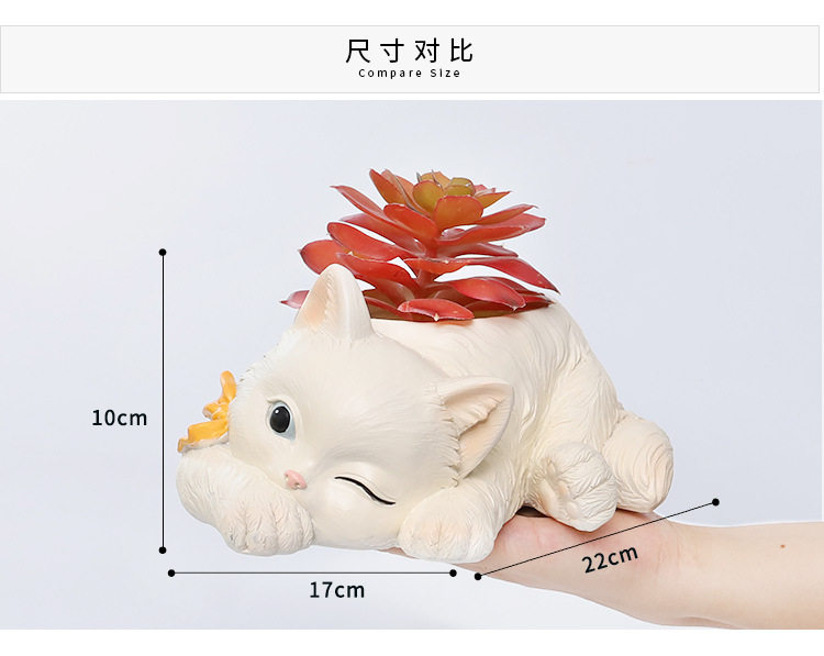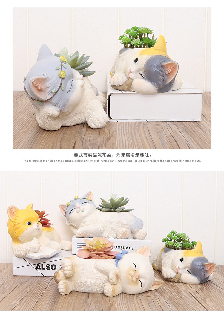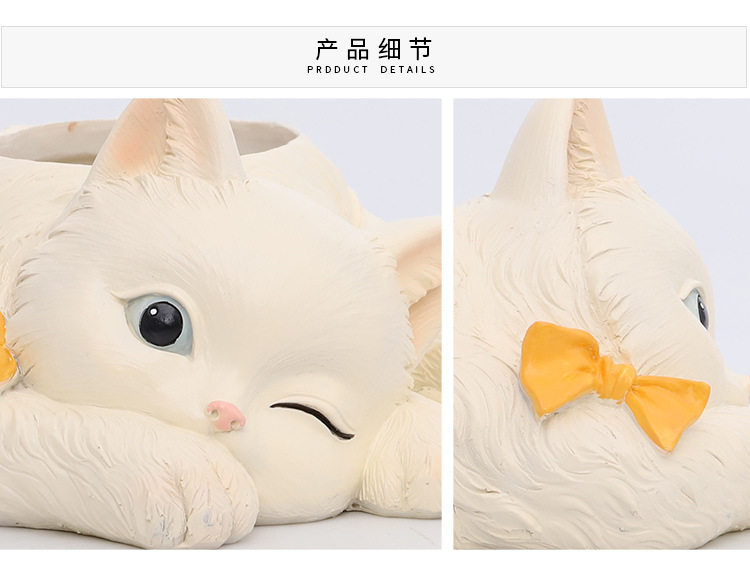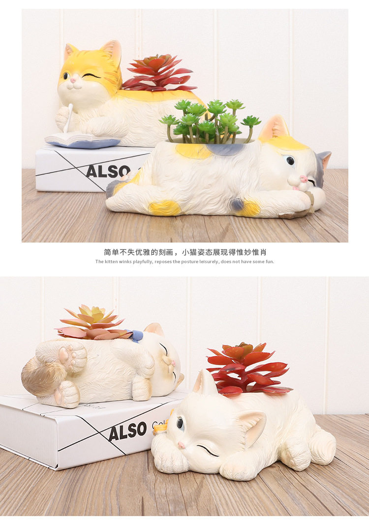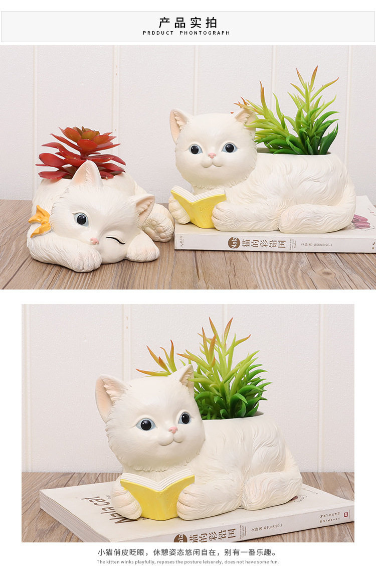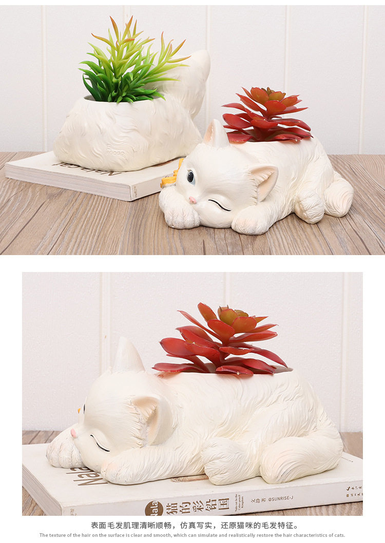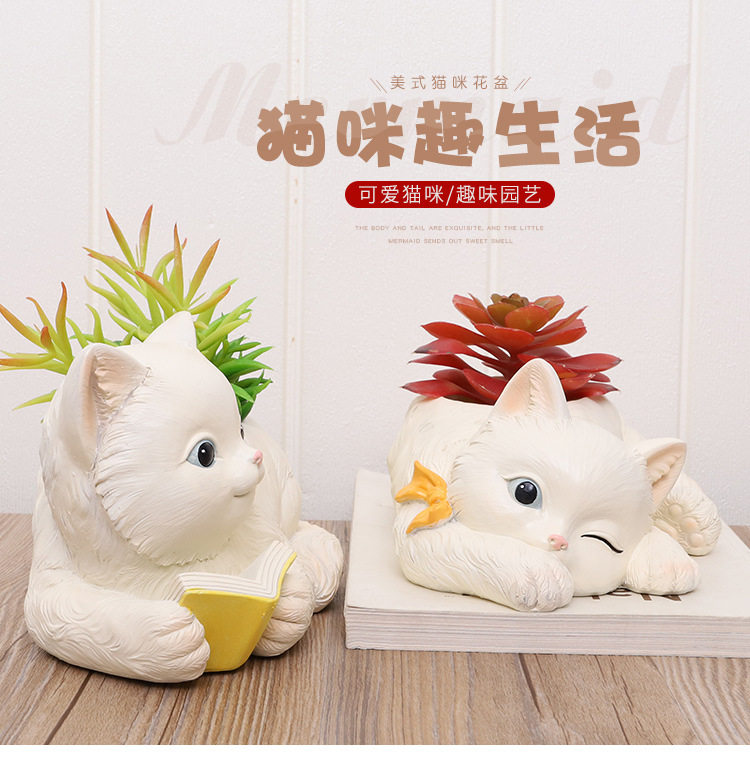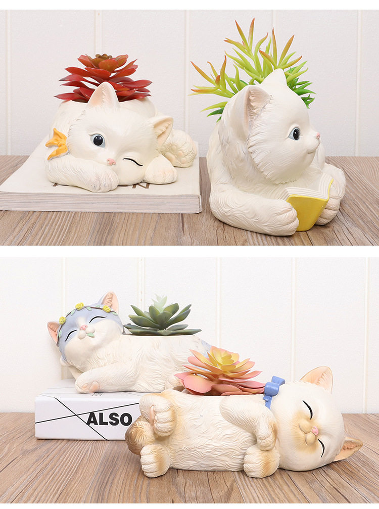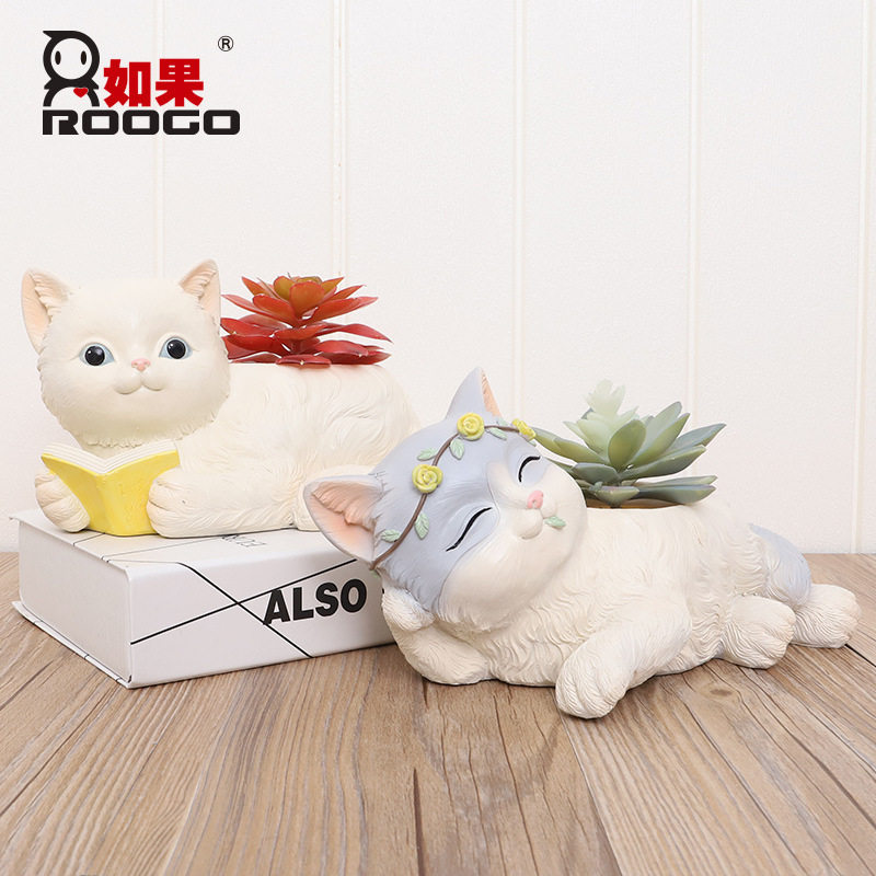 Если кошачий дом маленький белый мяс цветок горшок смола творческая кукла кошка кошка кошка кошка мультфильм личности милый цветок