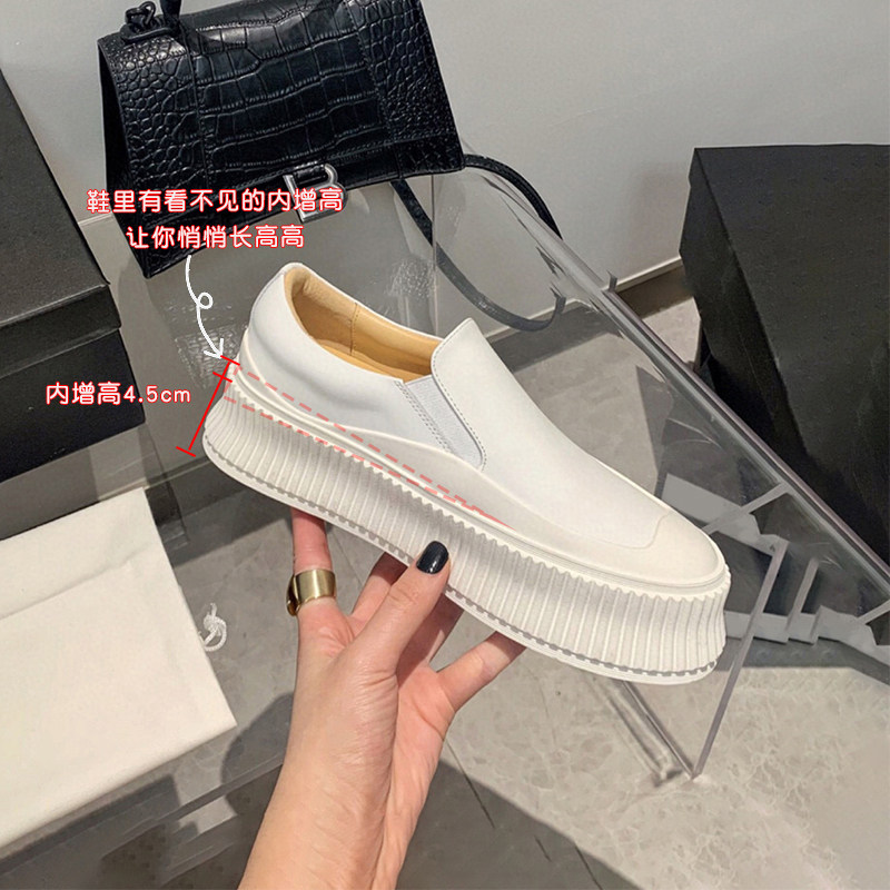 Из натуральной кожи ЛЕФУ ОБУВЬ 2021. новая коллекция Сотни приращений высокая толстая Нижнее маленькое белый Обувь ленивые люди, ботинки для отдыха туфли