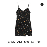 Сердце машины сторона Стейк пар винтаж V-образность высокая Тонкое печатное платье на талию лето 2021 новая коллекция