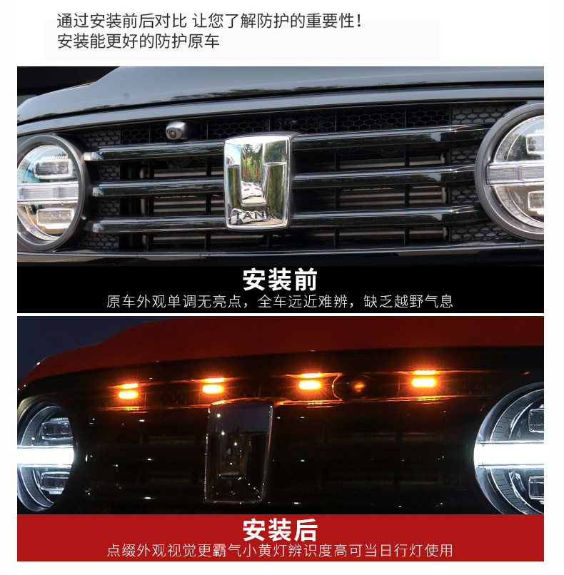 Танк 300 маленький желтый свет обновленная для решетка Светодиодное украшение свет Золотые глаза свет Атмосфера свет Внешний вид аксессуаров 21.
