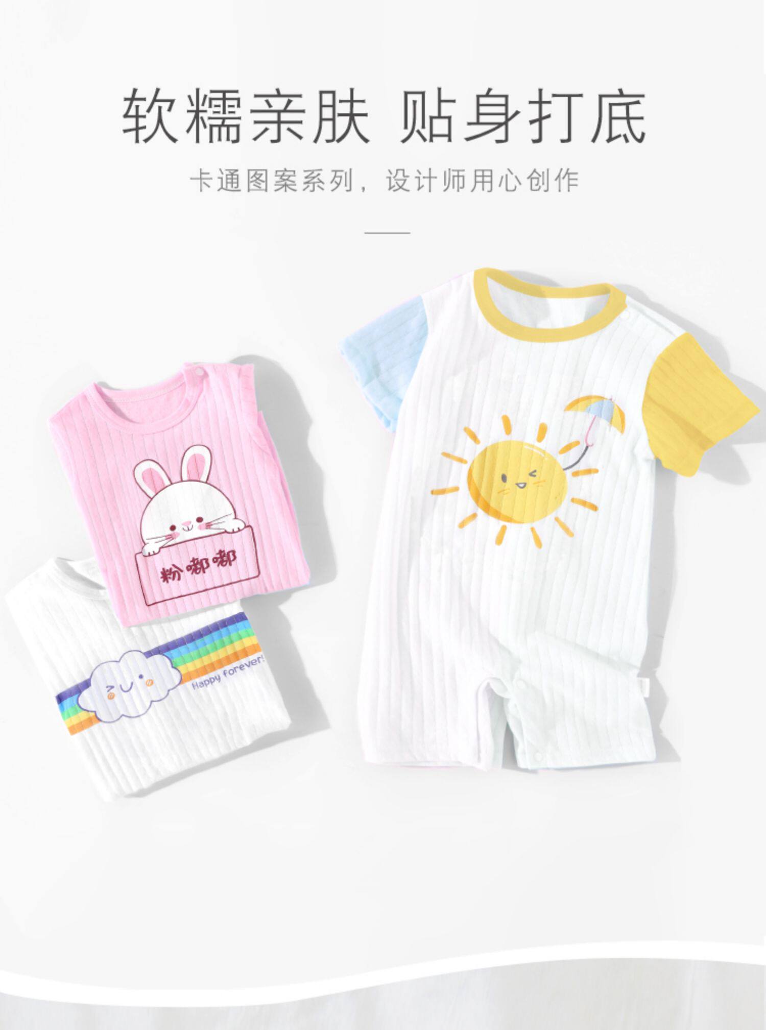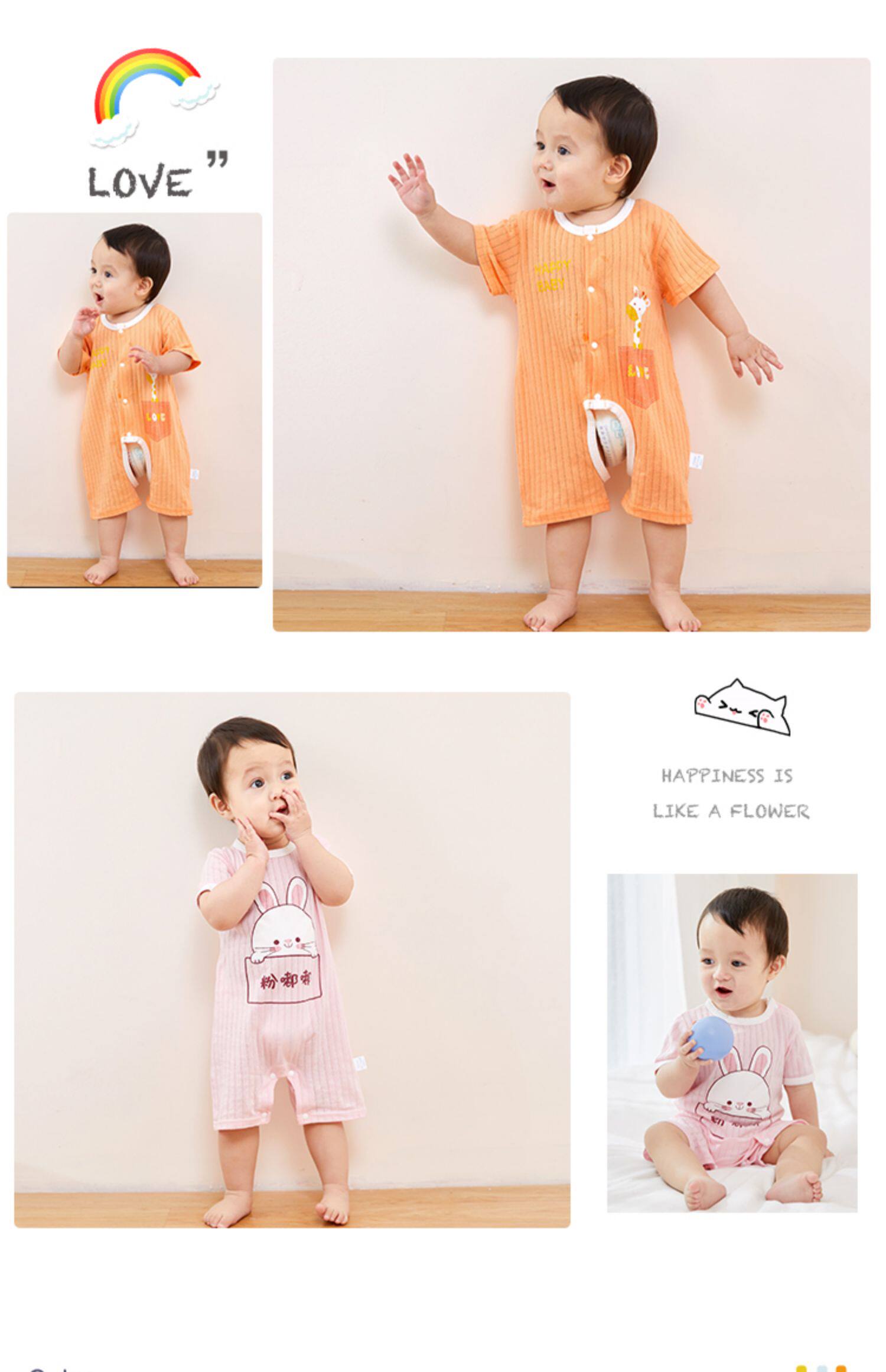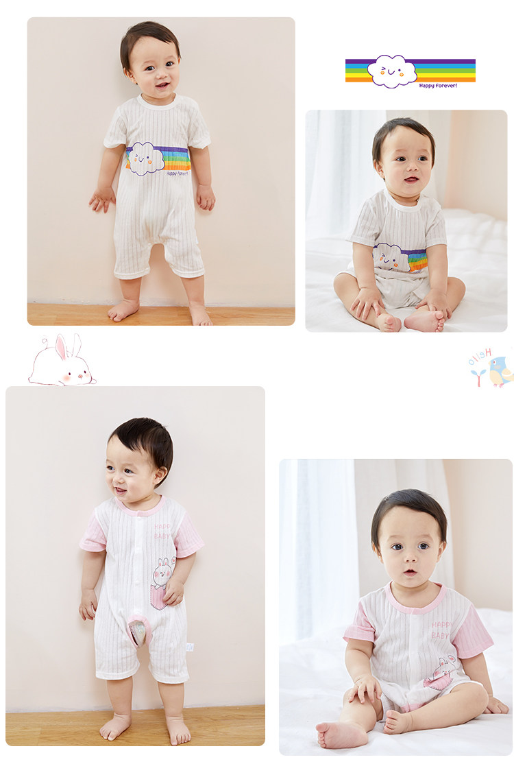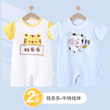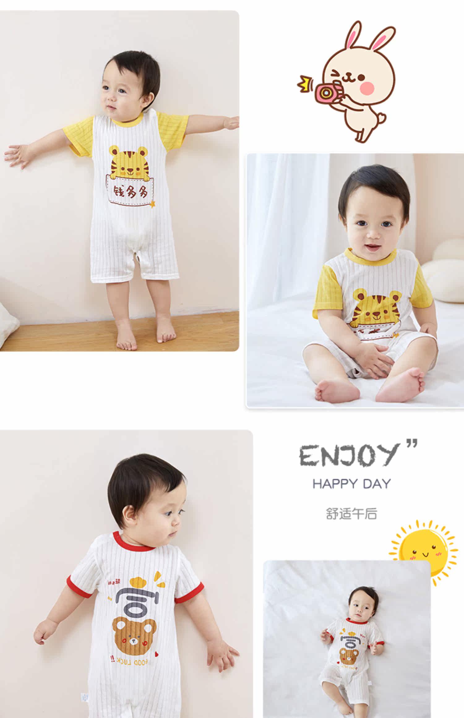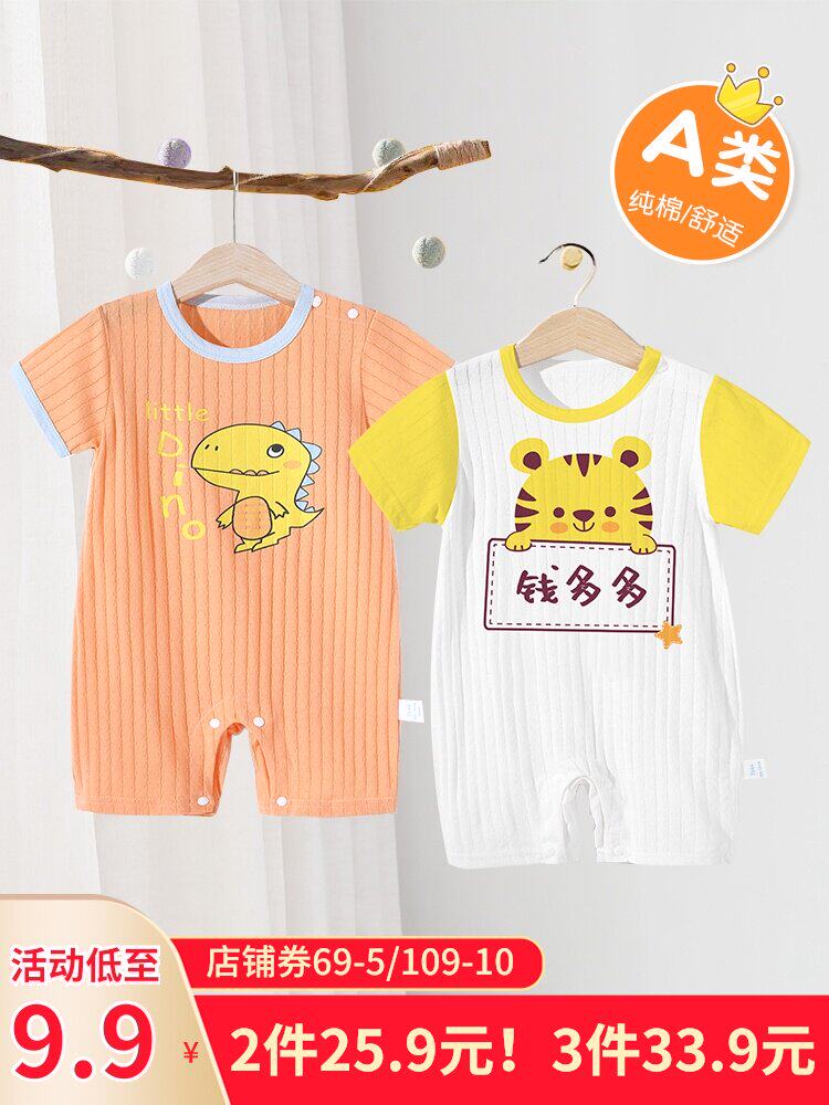 На младенца Летняя одежда тонкая стиль женский короткий рукав на младенца мужской детские пижамы чистый хлопок Летний комбинезон-комбинезон комплект
